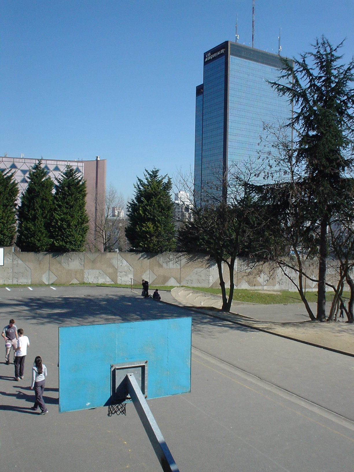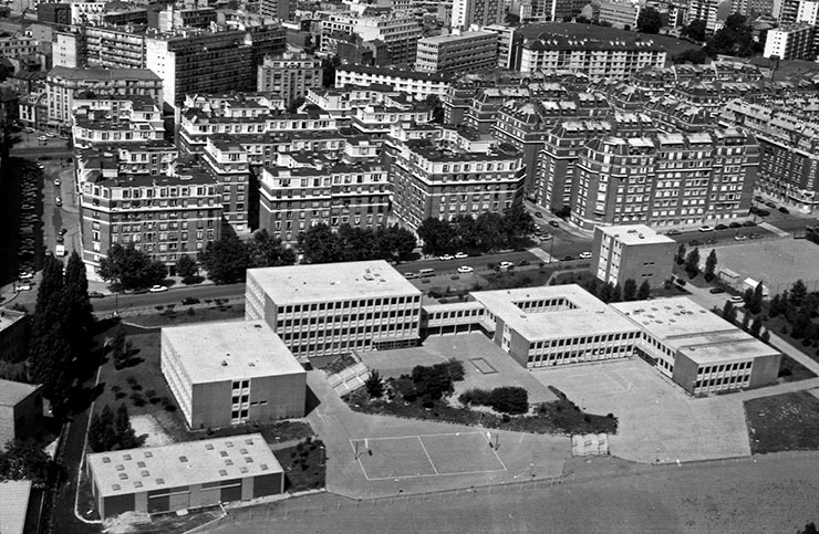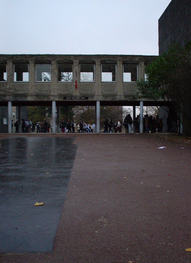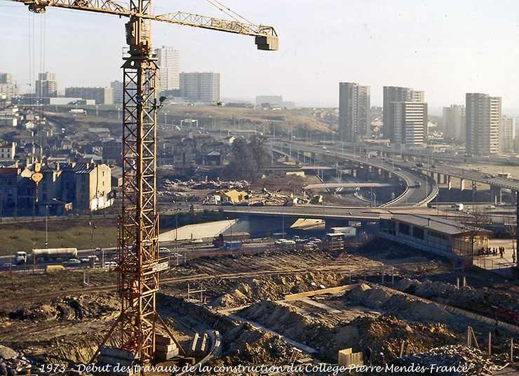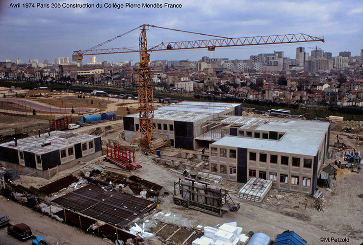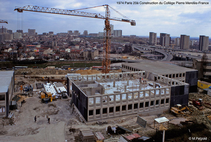 Le collège Pierre Mendès France (PMF) a été construit au milieu des années 1970 et peut accueillir environ 800 élèves. Campé rue le Vau, à équidistance entre la cité Python-Duvernois et celle dite des Fougères, PMF était alors considéré comme le plus grand établissement parisien situé en zone d’éducation prioritaire (ZEP). Il fait face aux immeubles en briques rouges typiques des années 1930 et tourne le dos à l’échangeur de la porte de Bagnolet et aux Mercuriales, les deux tours jumelles de Bagnolet construites en 1977.