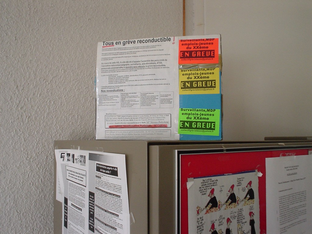 Cependant, mon statut était un statut bâtard qui me mettait profondément mal à l’aise. Contrairement aux Maîtres d’Internat et Surveillants d’Externat (MI-SE) recrutés par les recteurs d’académie sur critères sociaux (avec barème), les Maîtres de Demi-Pension, comme les Assistants d’Éducation (AE), étaient embauchés directement par les chefs d’établissement. Mon malaise s’expliquait d’autant mieux que j’intégrais le collège en mars 2003, soit juste après une période intense de mobilisation sociale et de grèves dans l’Éducation nationale.