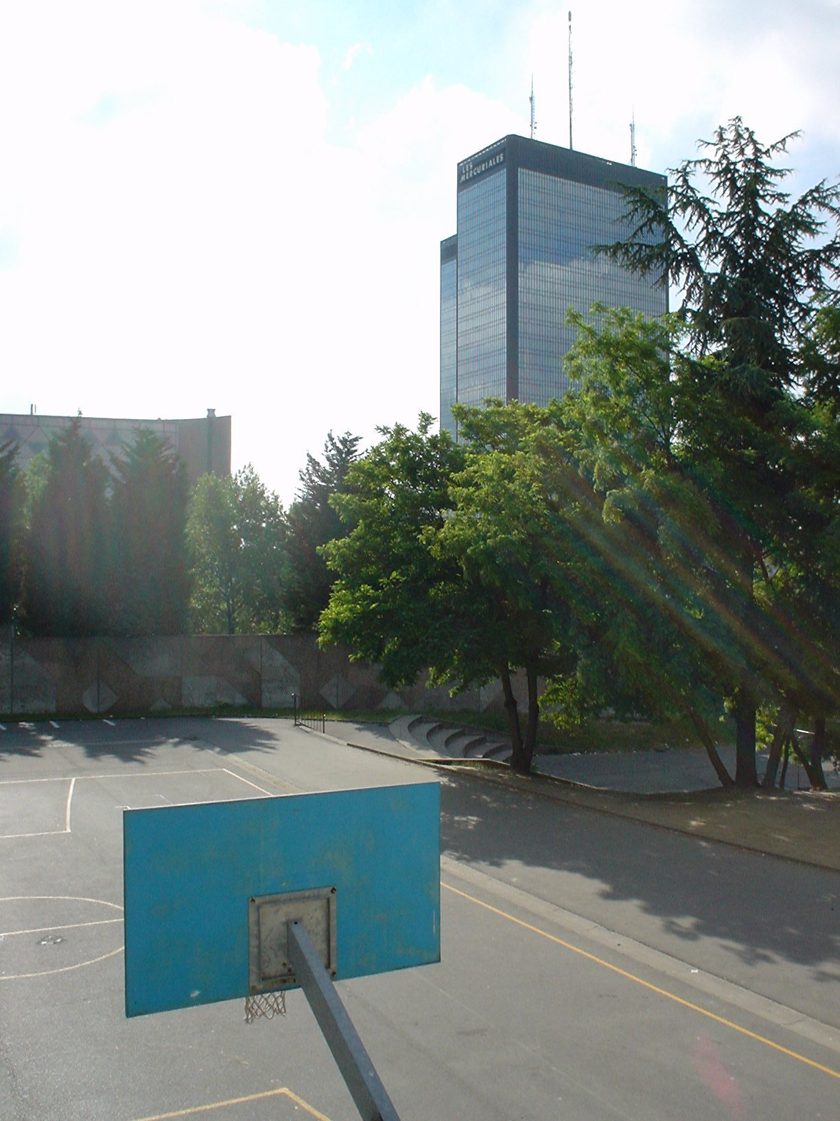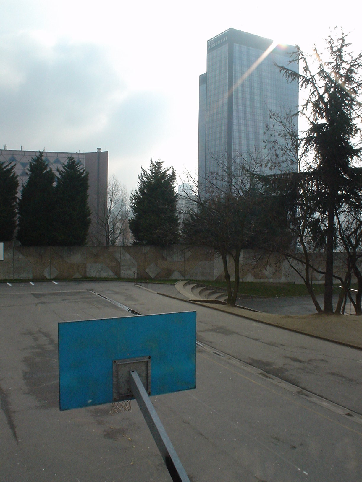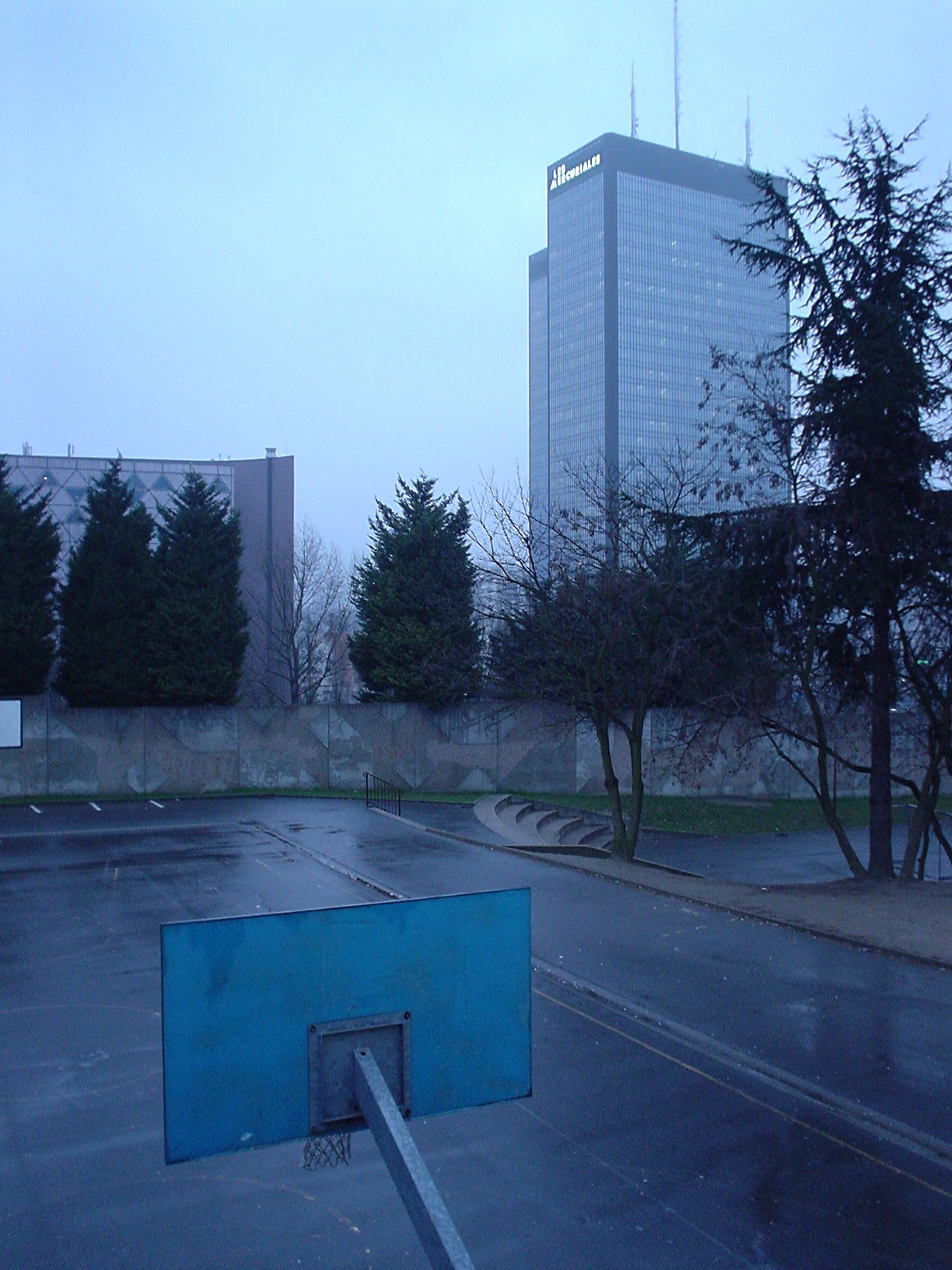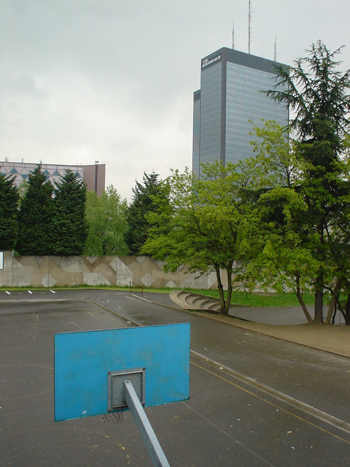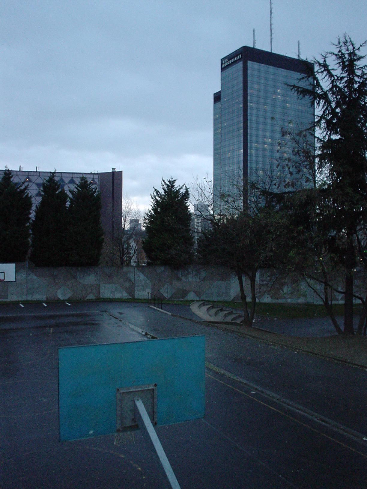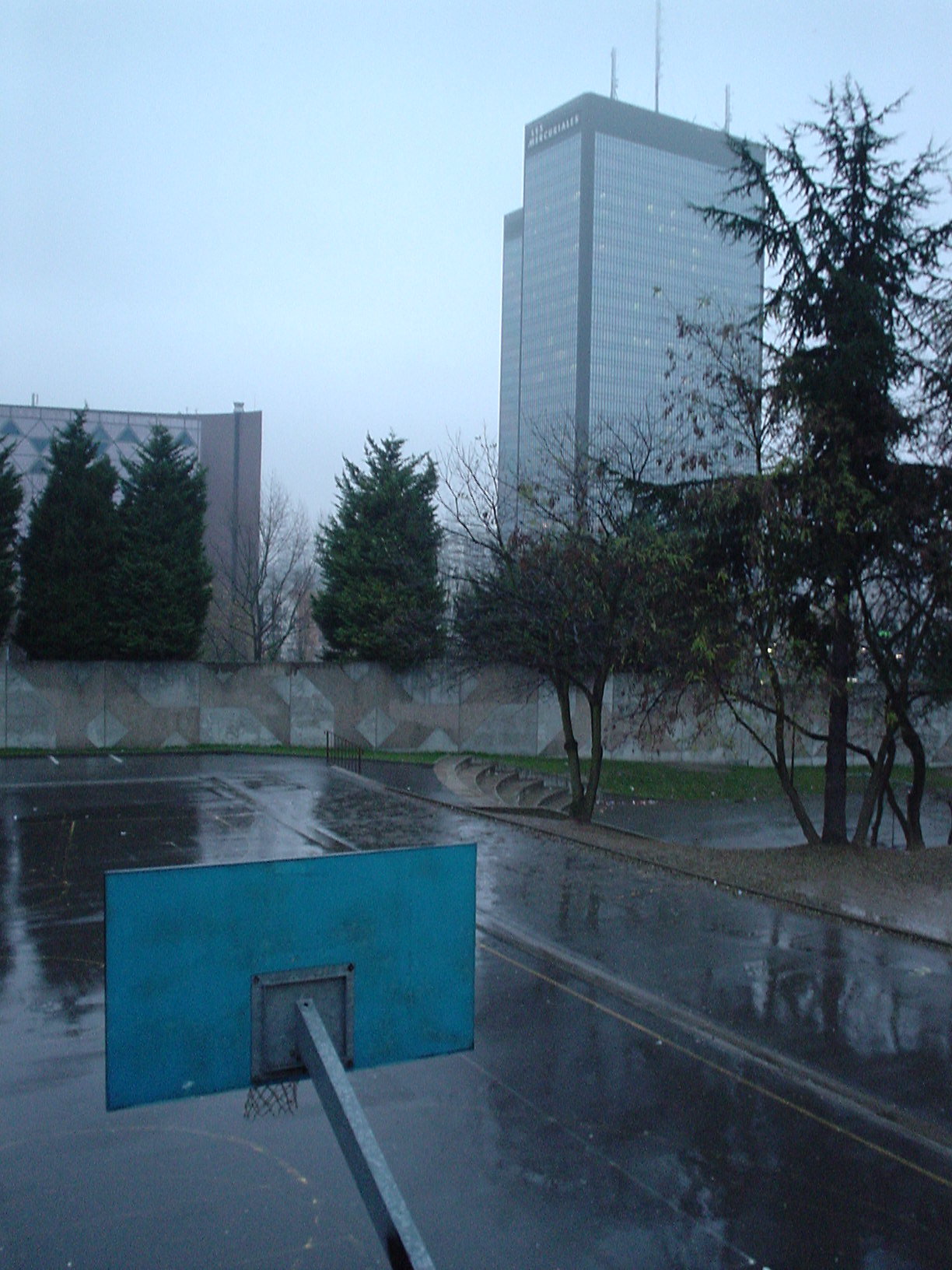 Une tentative d’épuisement du paysage routinier à partir du point de vue que l’on obtient depuis la salle fumeurs des enseignants. Chaque photographie est donc le résultat d’une pause (clope) prise sur le travail. Les prises de vue sont réalisées de façon quotidienne et s’étendent sur l’année de septembre 2003 à juin 2004. Le cadrage est toujours le même et l’écoulement du temps au collège sur une année est rendu prégnant à l’image par le changement des saisons. Le temps s’imprime à l’image, les variations de lumière d’une prise de vue à l’autre et les fondus enchaînés évoquent les jours qui passent. Une année entière est ainsi condensée à l’image.