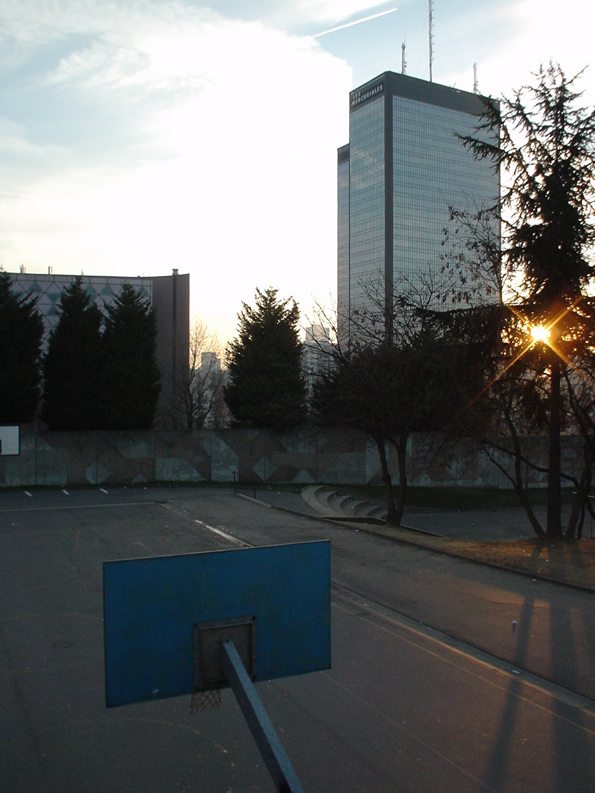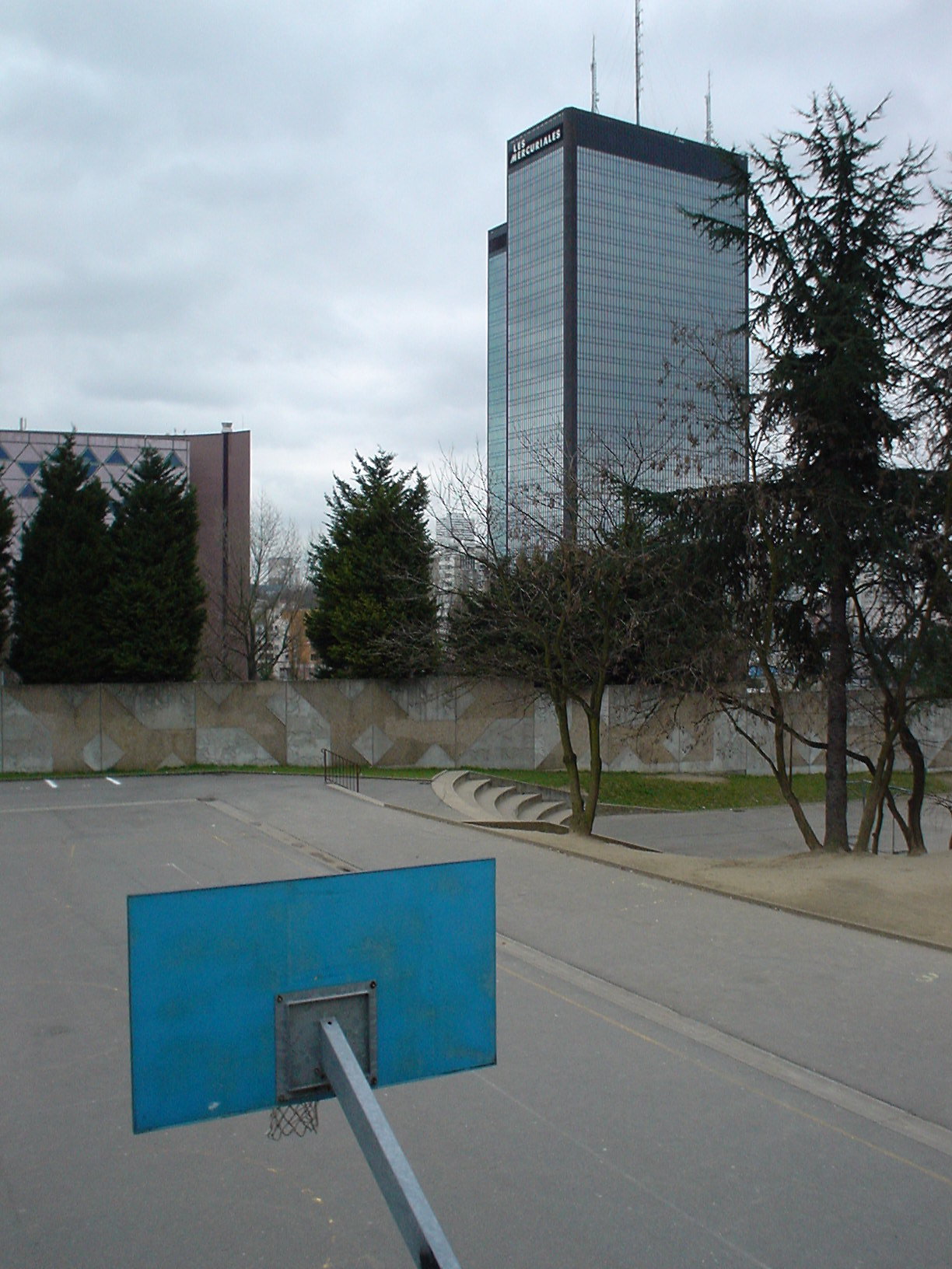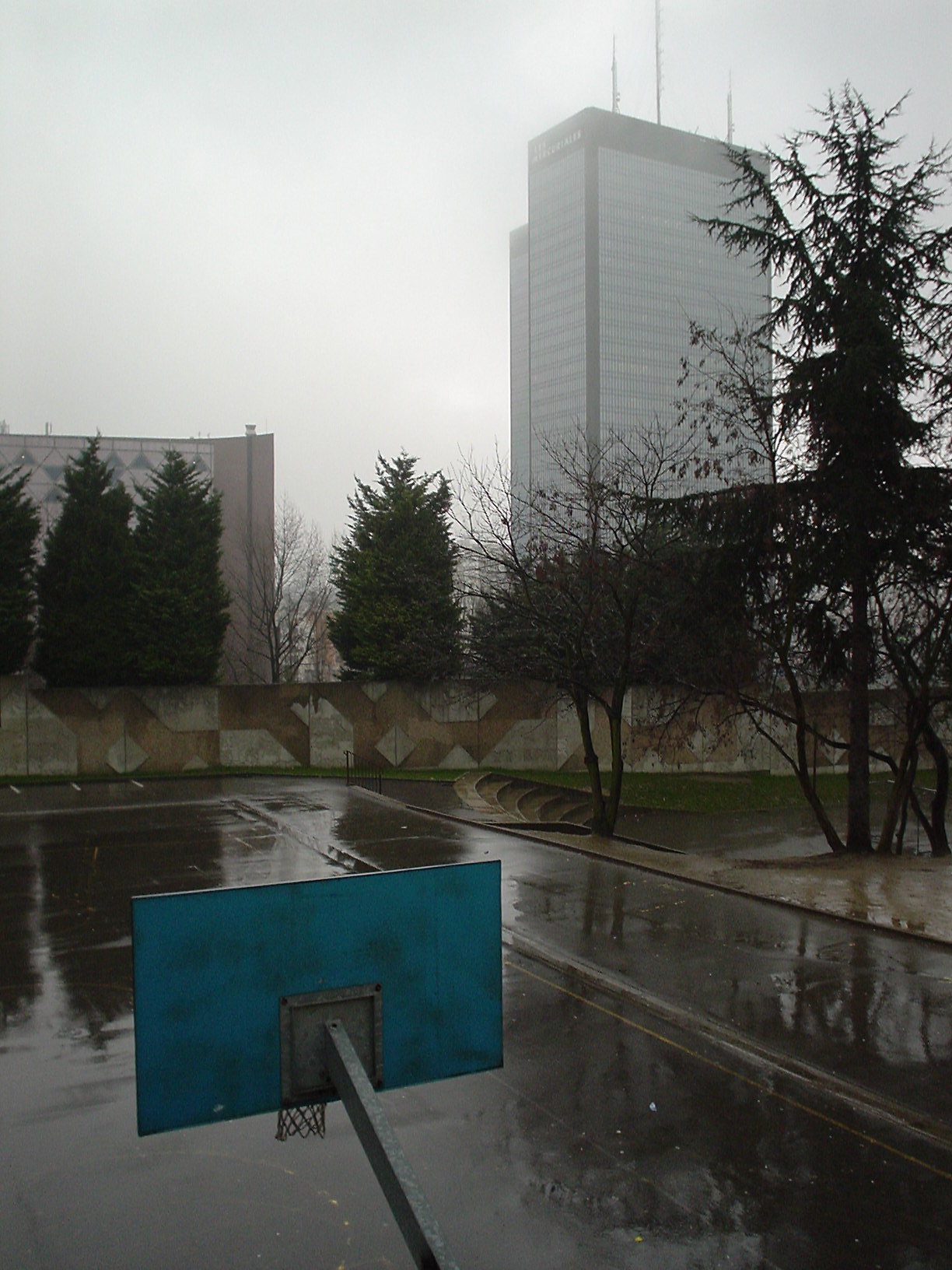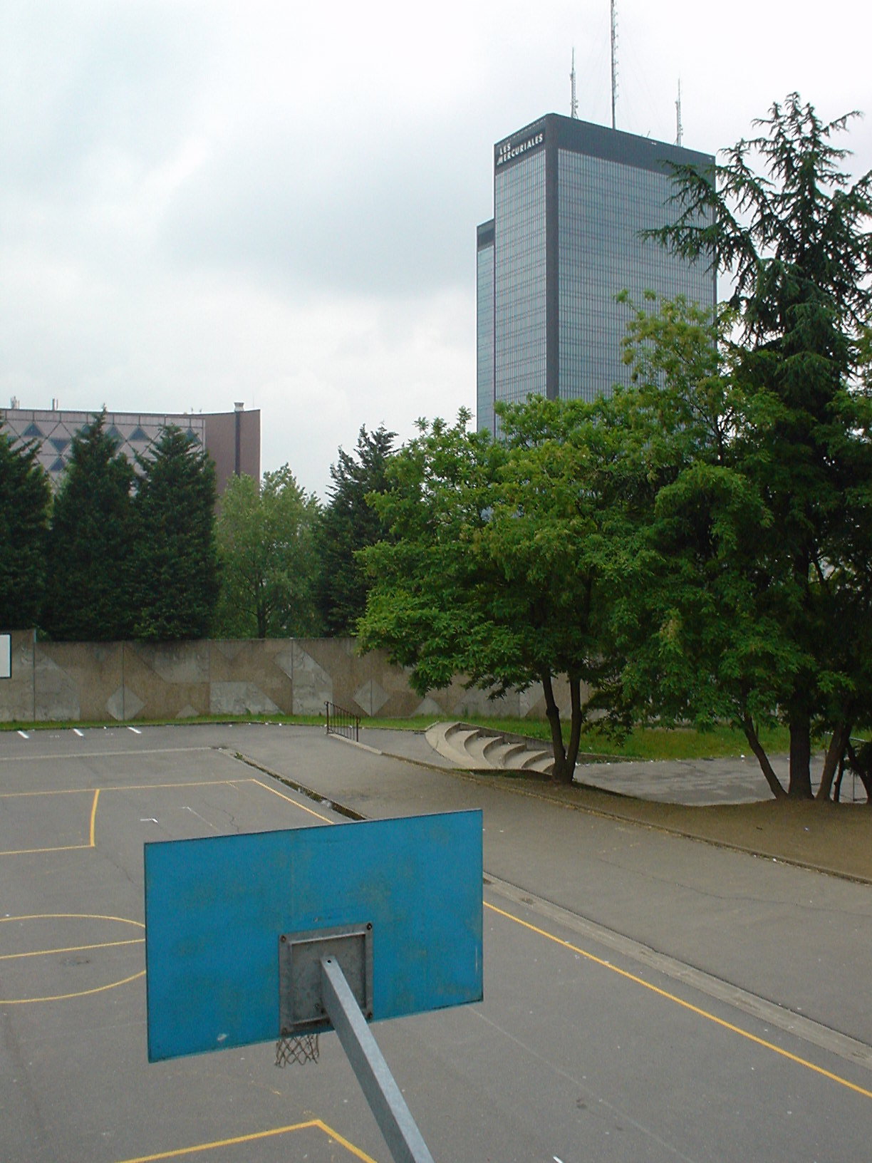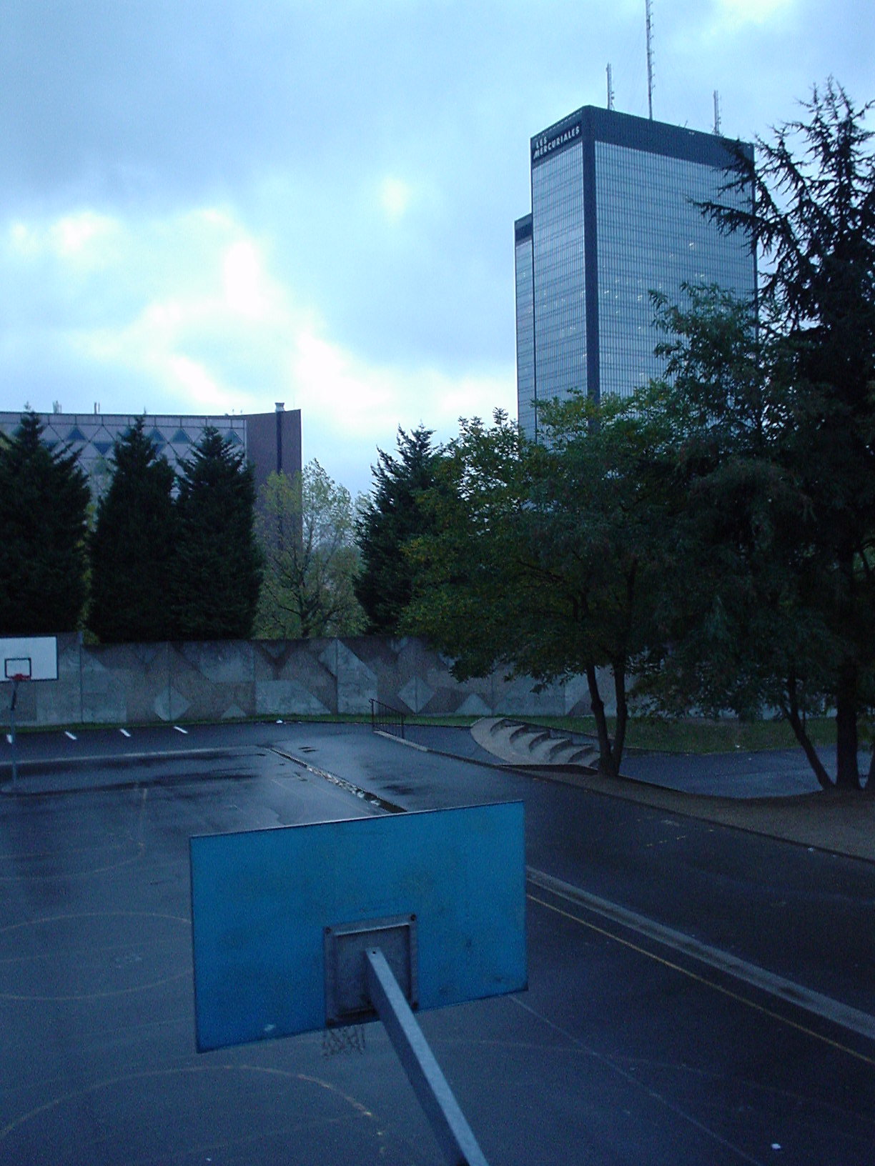 Une tentative d’épuisement du paysage routinier à partir du point de vue que l’on obtient depuis la salle fumeurs des enseignants. Chaque photographie est donc le résultat d’une pause (clope) prise sur le travail. Les prises de vue sont réalisées de façon quotidienne et s’étendent sur l’année de septembre 2003 à juin 2004. Le cadrage est toujours le même et l’écoulement du temps au collège sur une année est rendu prégnant à l’image par le changement des saisons. Le temps s’imprime à l’image, les variations de lumière d’une prise de vue à l’autre et les fondus enchaînés évoquent les jours qui passent. Une année entière est ainsi condensée à l’image.