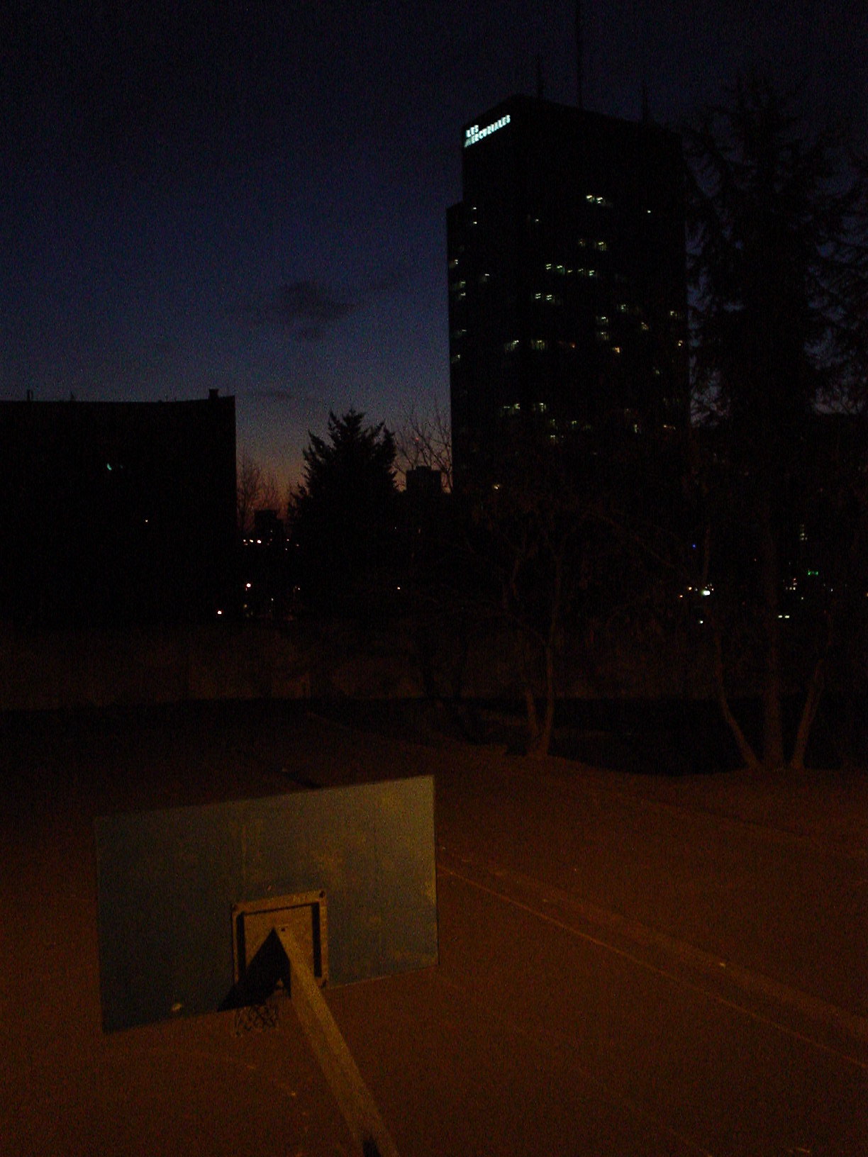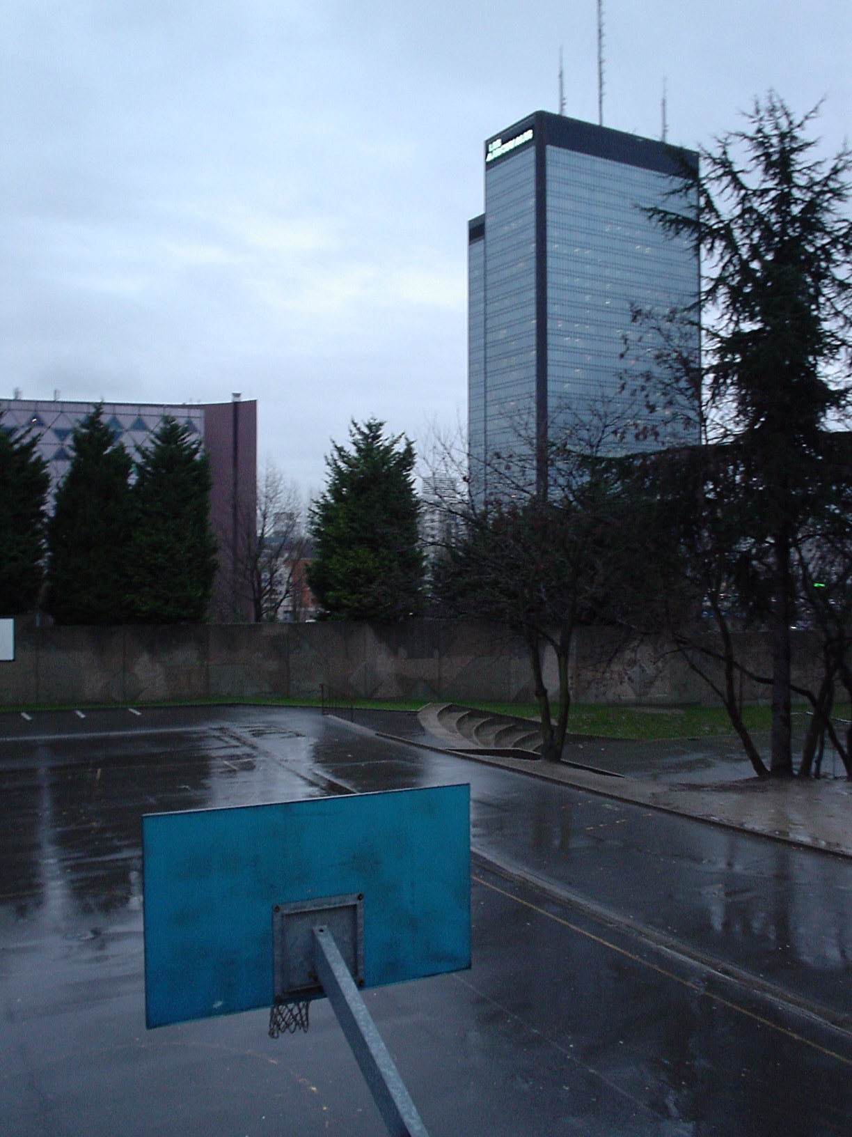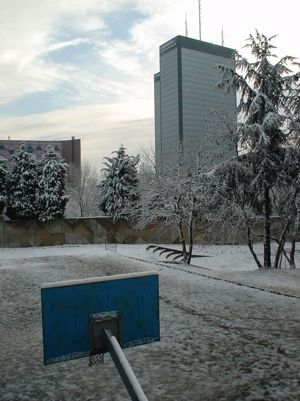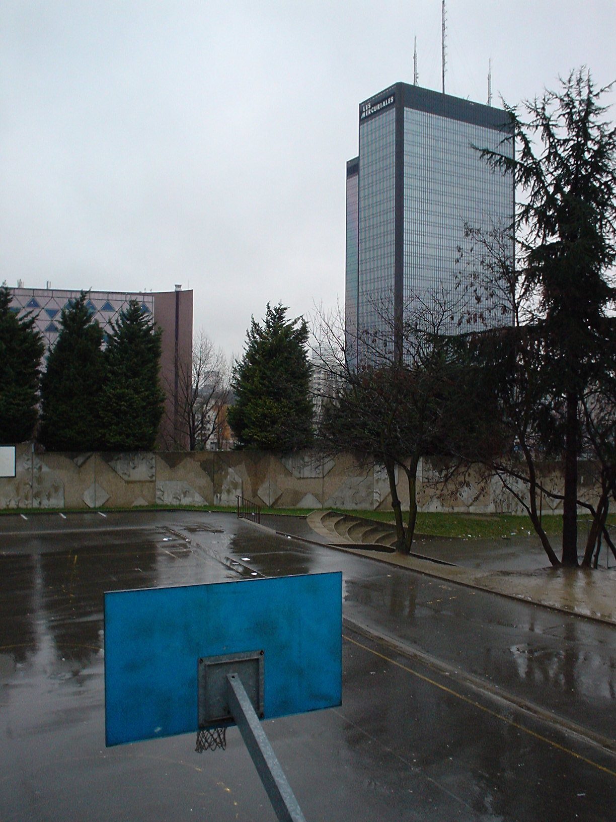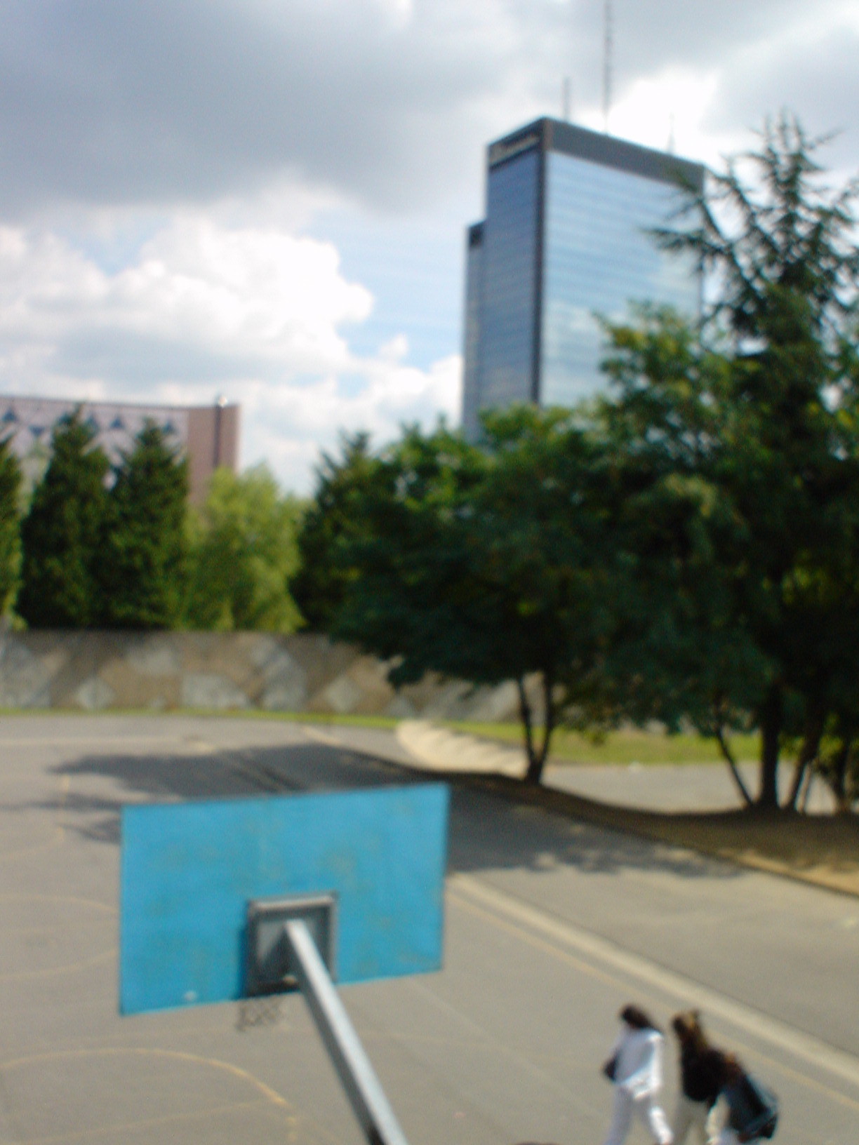 Une tentative d’épuisement du paysage routinier à partir du point de vue que l’on obtient depuis la salle fumeurs des enseignants. Chaque photographie est donc le résultat d’une pause (clope) prise sur le travail. Les prises de vue sont réalisées de façon quotidienne et s’étendent sur l’année de septembre 2003 à juin 2004. Le cadrage est toujours le même et l’écoulement du temps au collège sur une année est rendu prégnant à l’image par le changement des saisons. Le temps s’imprime à l’image, les variations de lumière d’une prise de vue à l’autre et les fondus enchaînés évoquent les jours qui passent. Une année entière est ainsi condensée à l’image.