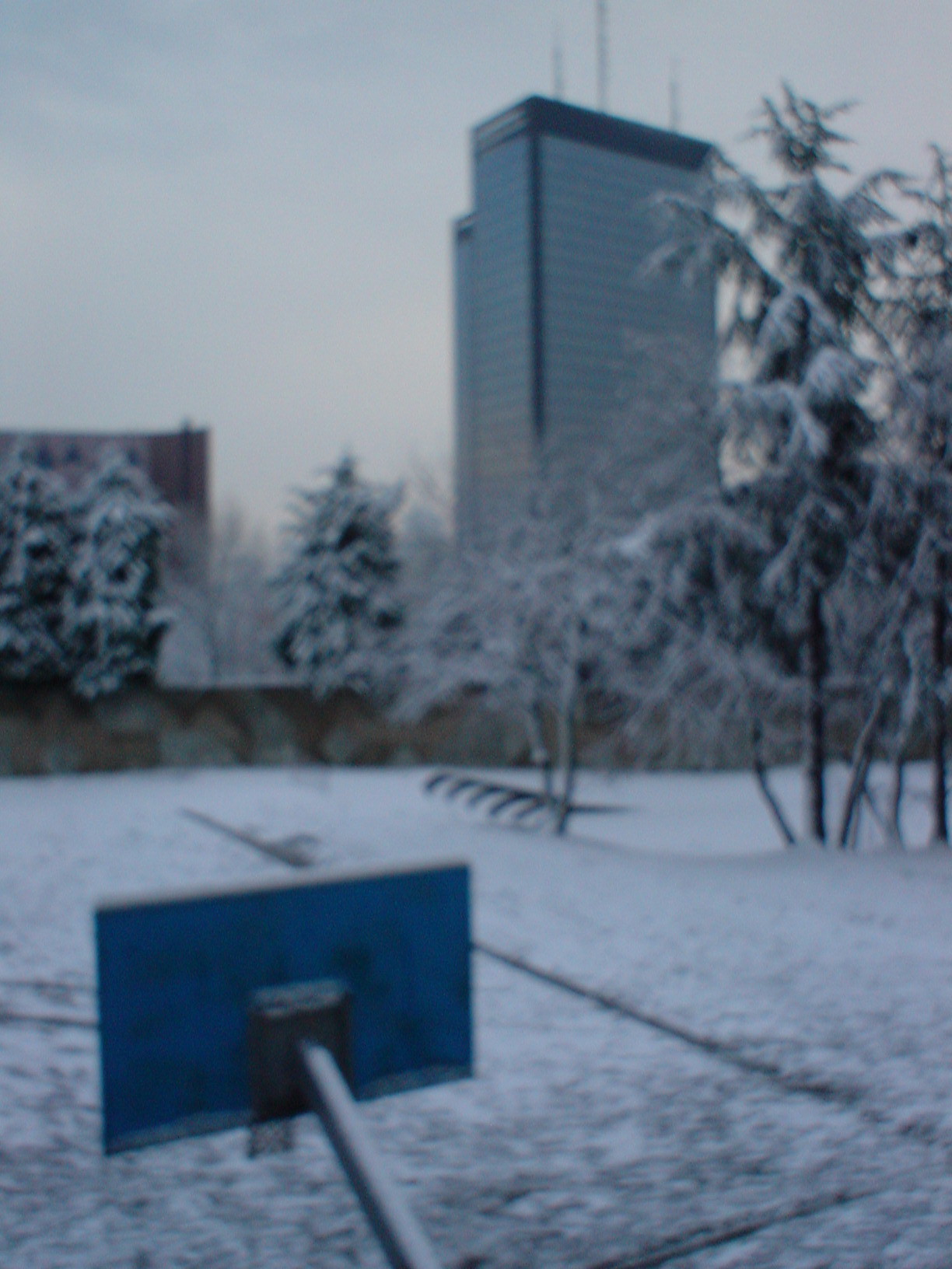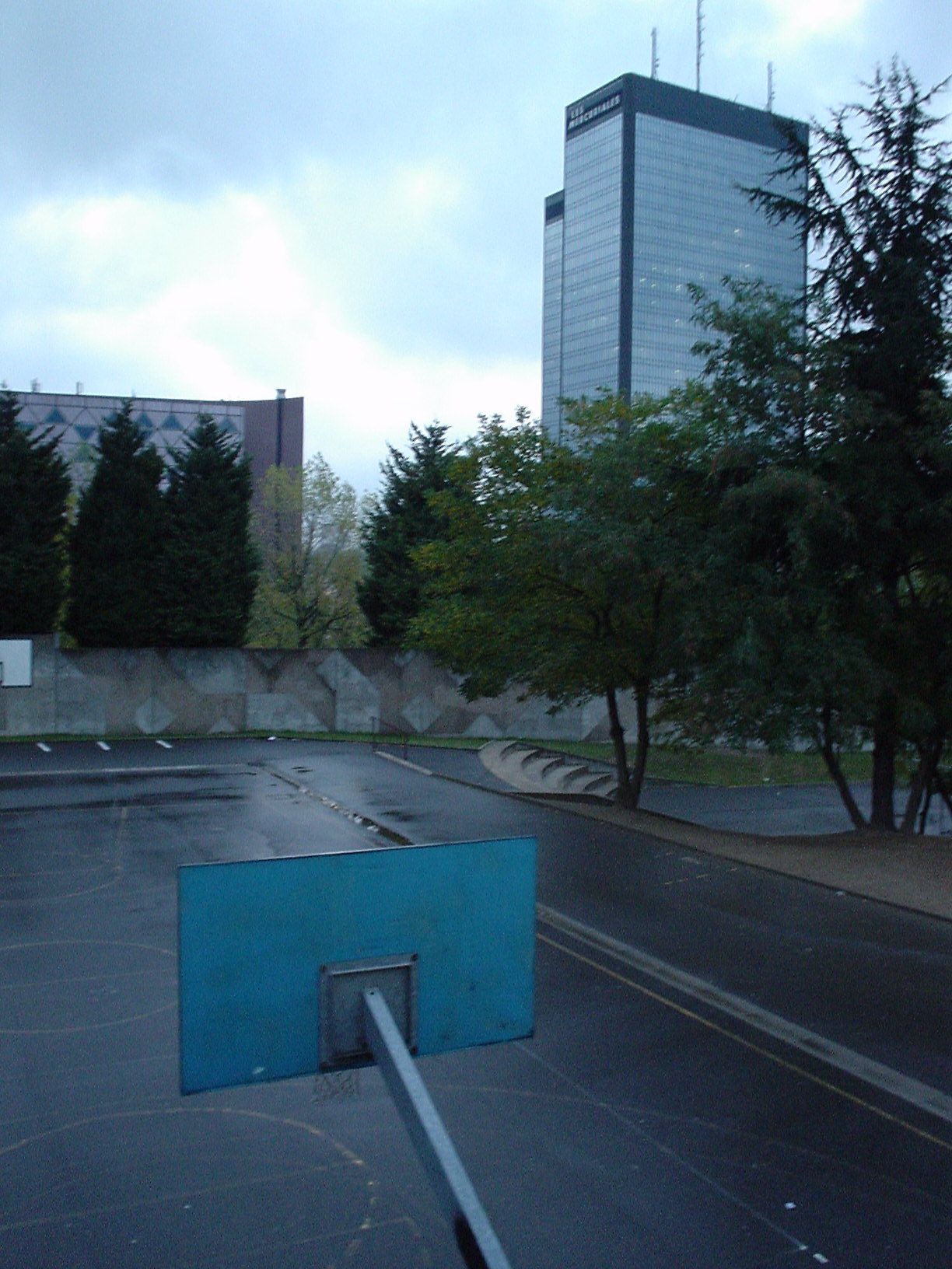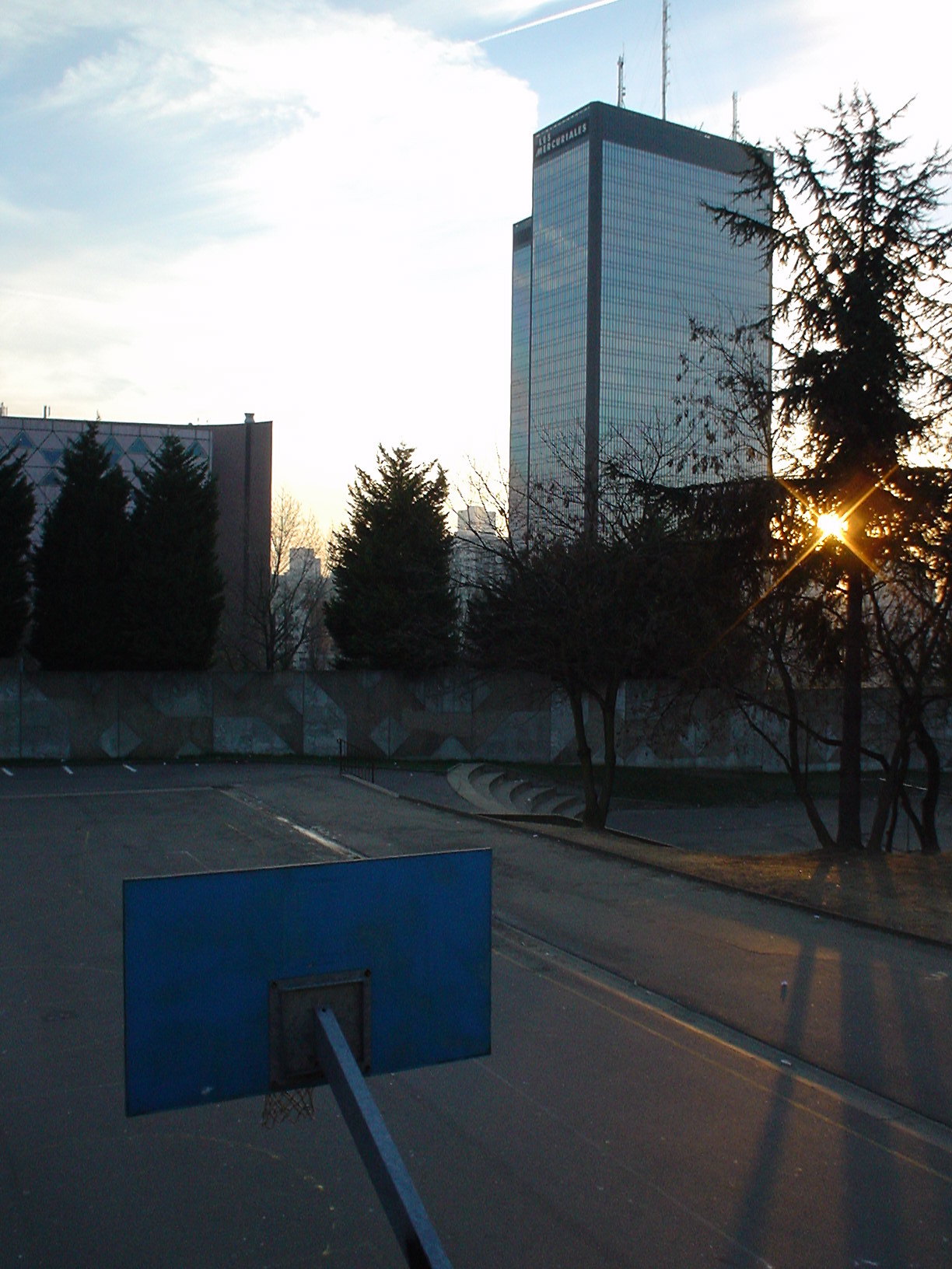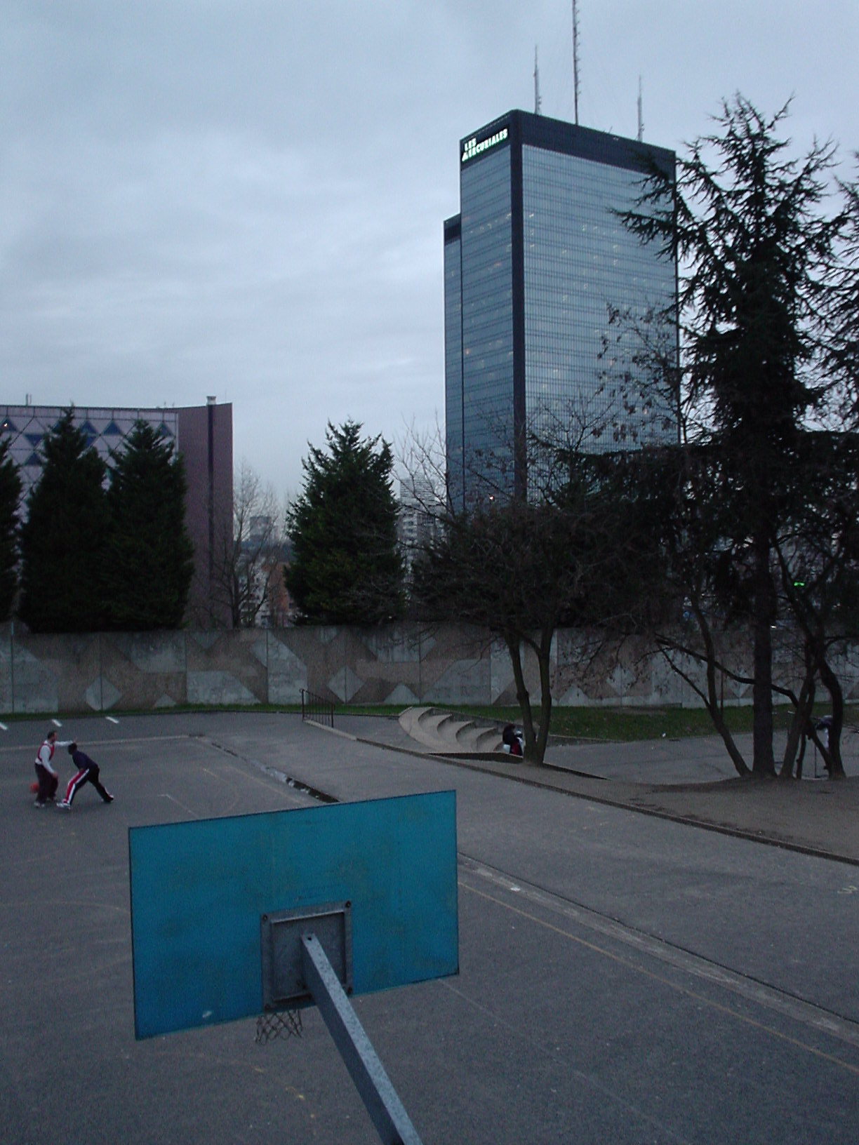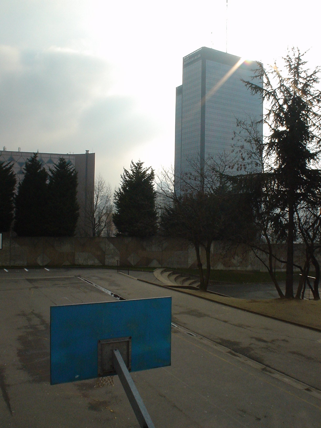 Une tentative d’épuisement du paysage routinier à partir du point de vue que l’on obtient depuis la salle fumeurs des enseignants. Chaque photographie est donc le résultat d’une pause (clope) prise sur le travail. Les prises de vue sont réalisées de façon quotidienne et s’étendent sur l’année de septembre 2003 à juin 2004. Le cadrage est toujours le même et l’écoulement du temps au collège sur une année est rendu prégnant à l’image par le changement des saisons. Le temps s’imprime à l’image, les variations de lumière d’une prise de vue à l’autre et les fondus enchaînés évoquent les jours qui passent. Une année entière est ainsi condensée à l’image.
