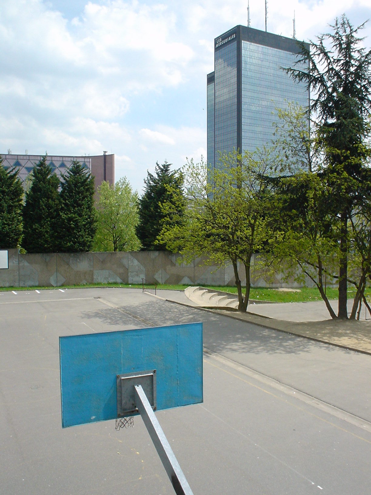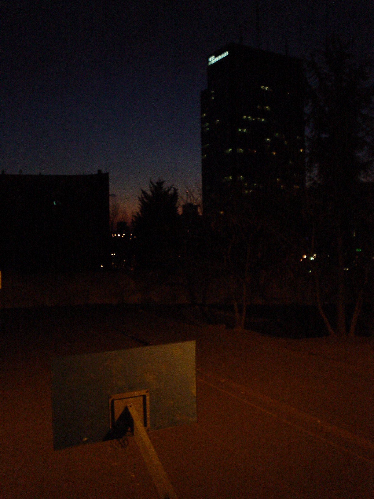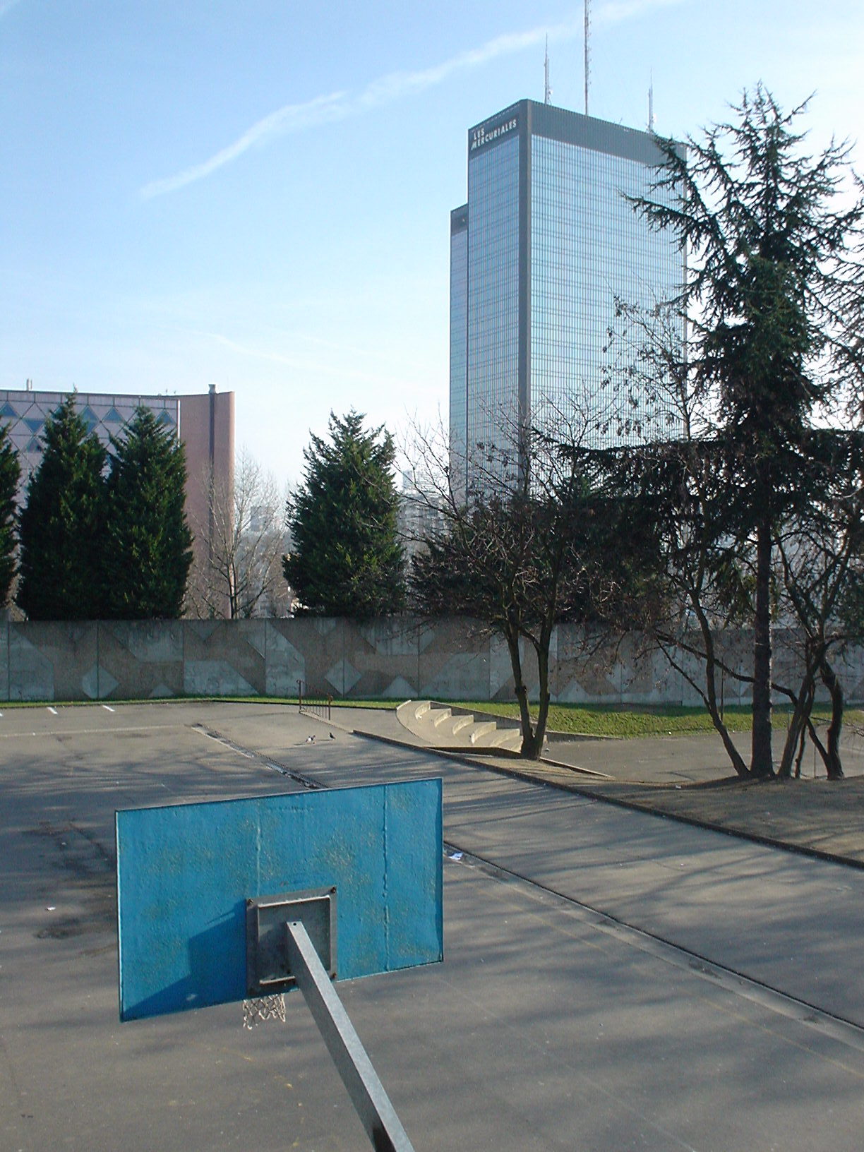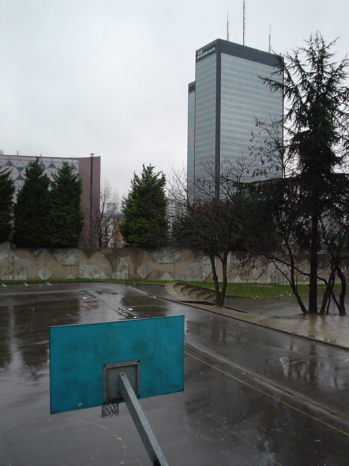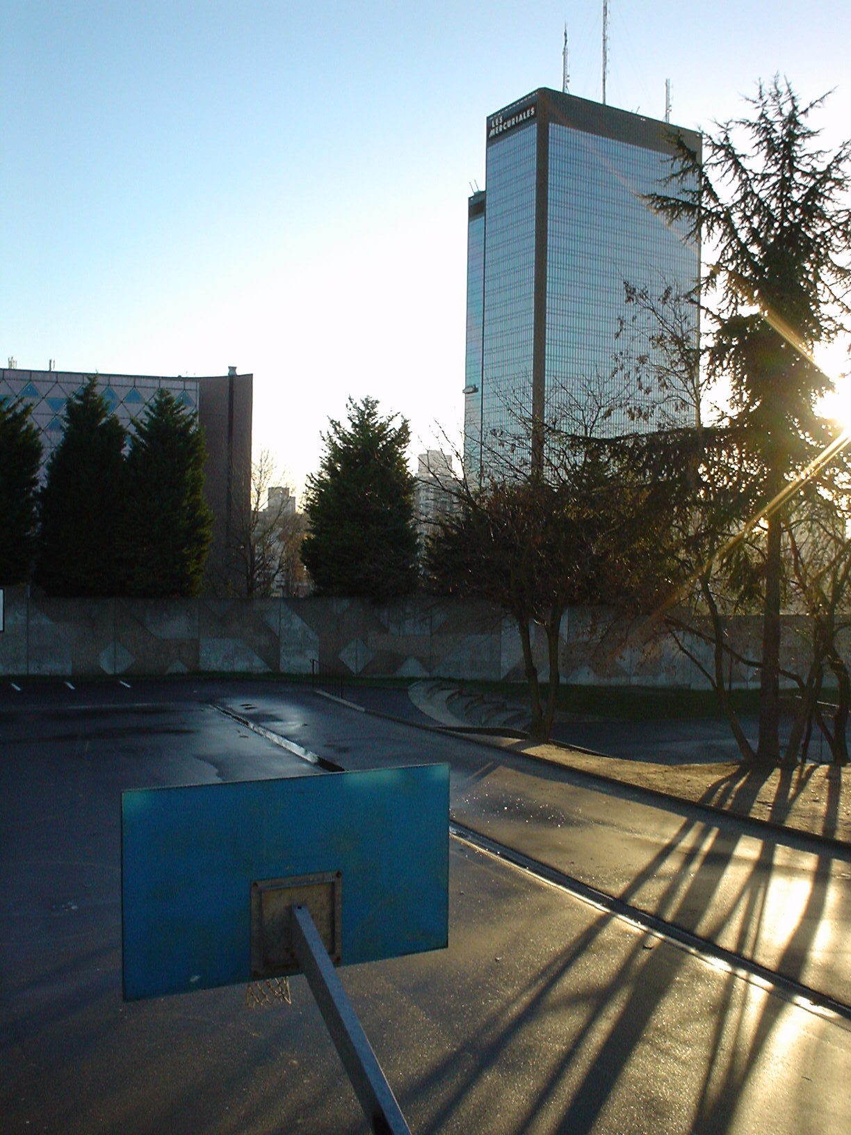 Une tentative d’épuisement du paysage routinier à partir du point de vue que l’on obtient depuis la salle fumeurs des enseignants. Chaque photographie est donc le résultat d’une pause (clope) prise sur le travail. Les prises de vue sont réalisées de façon quotidienne et s’étendent sur l’année de septembre 2003 à juin 2004. Le cadrage est toujours le même et l’écoulement du temps au collège sur une année est rendu prégnant à l’image par le changement des saisons. Le temps s’imprime à l’image, les variations de lumière d’une prise de vue à l’autre et les fondus enchaînés évoquent les jours qui passent. Une année entière est ainsi condensée à l’image.