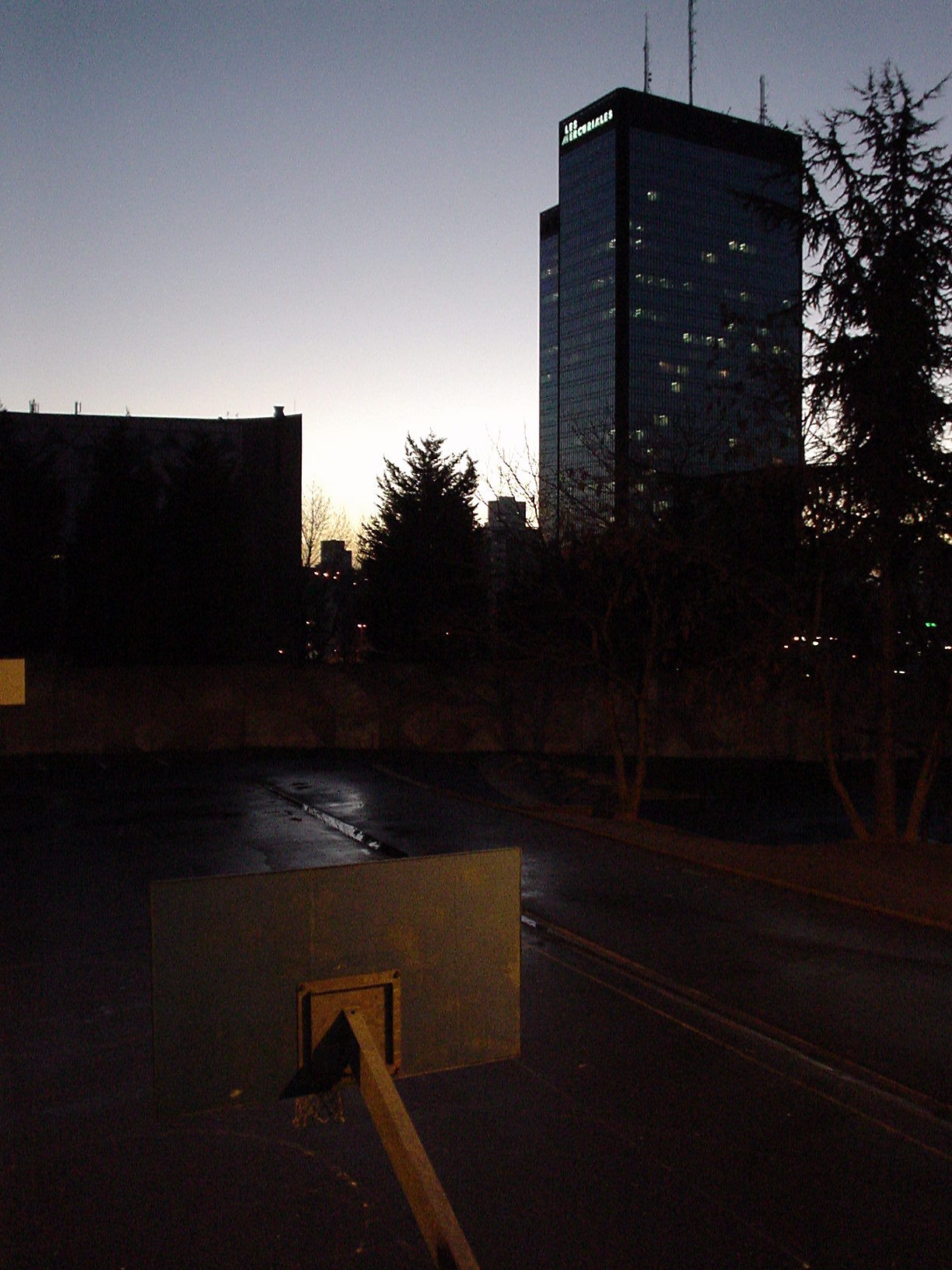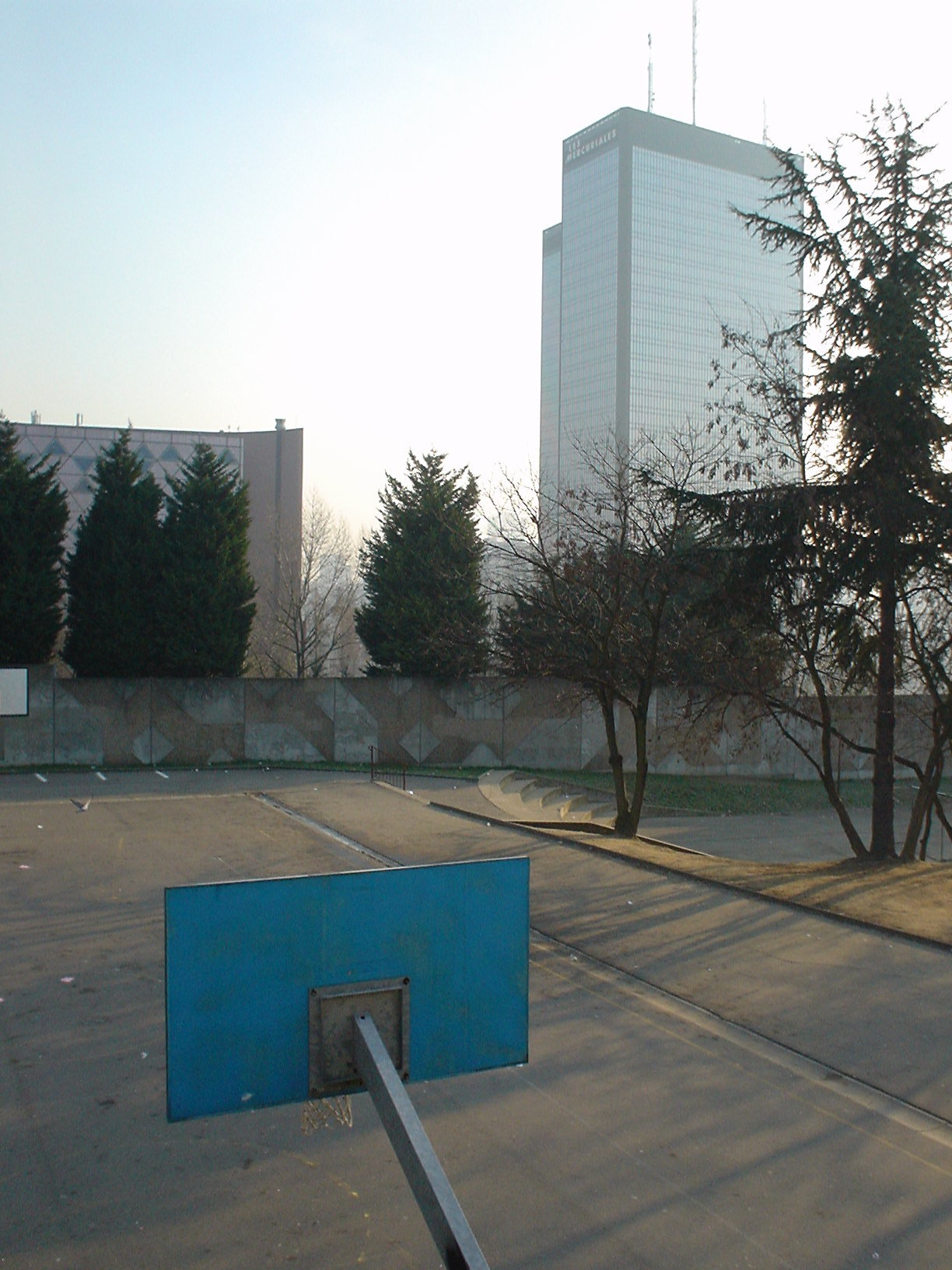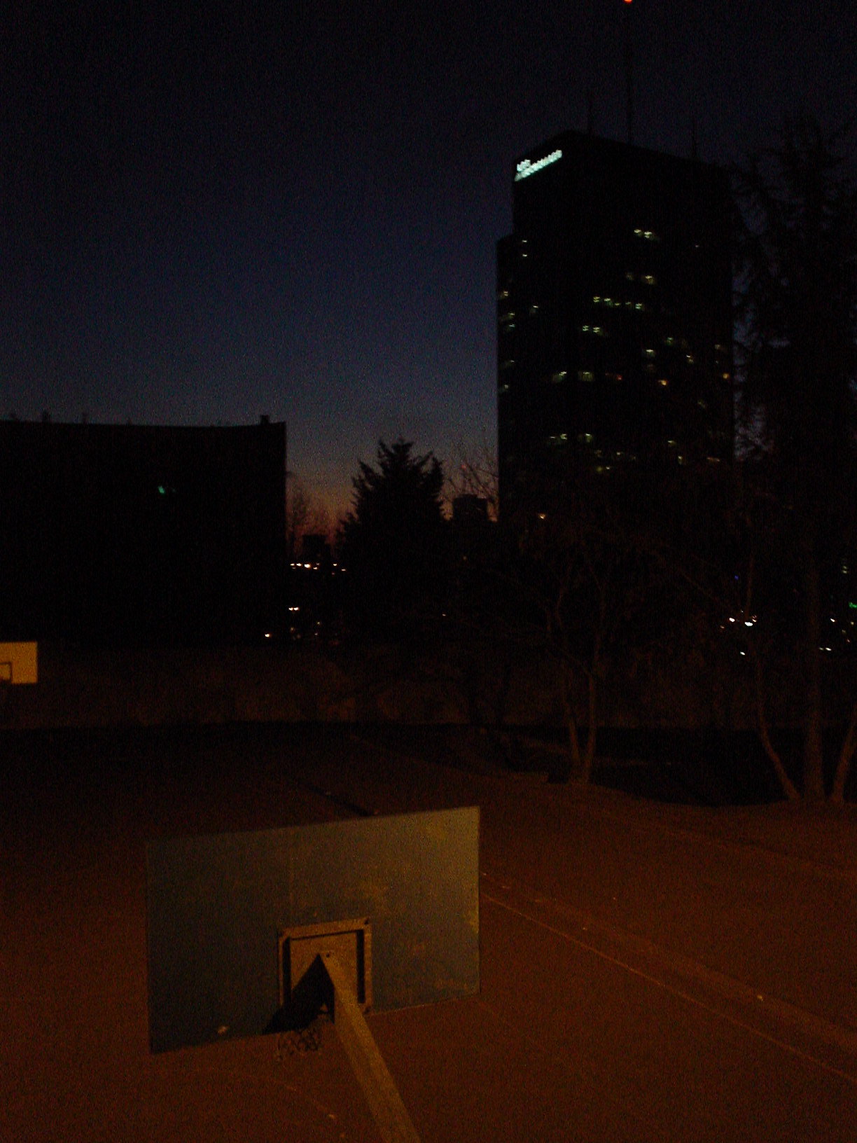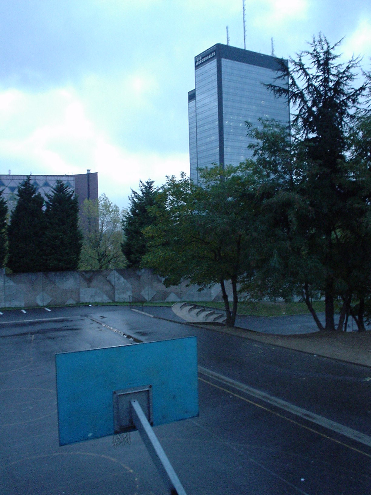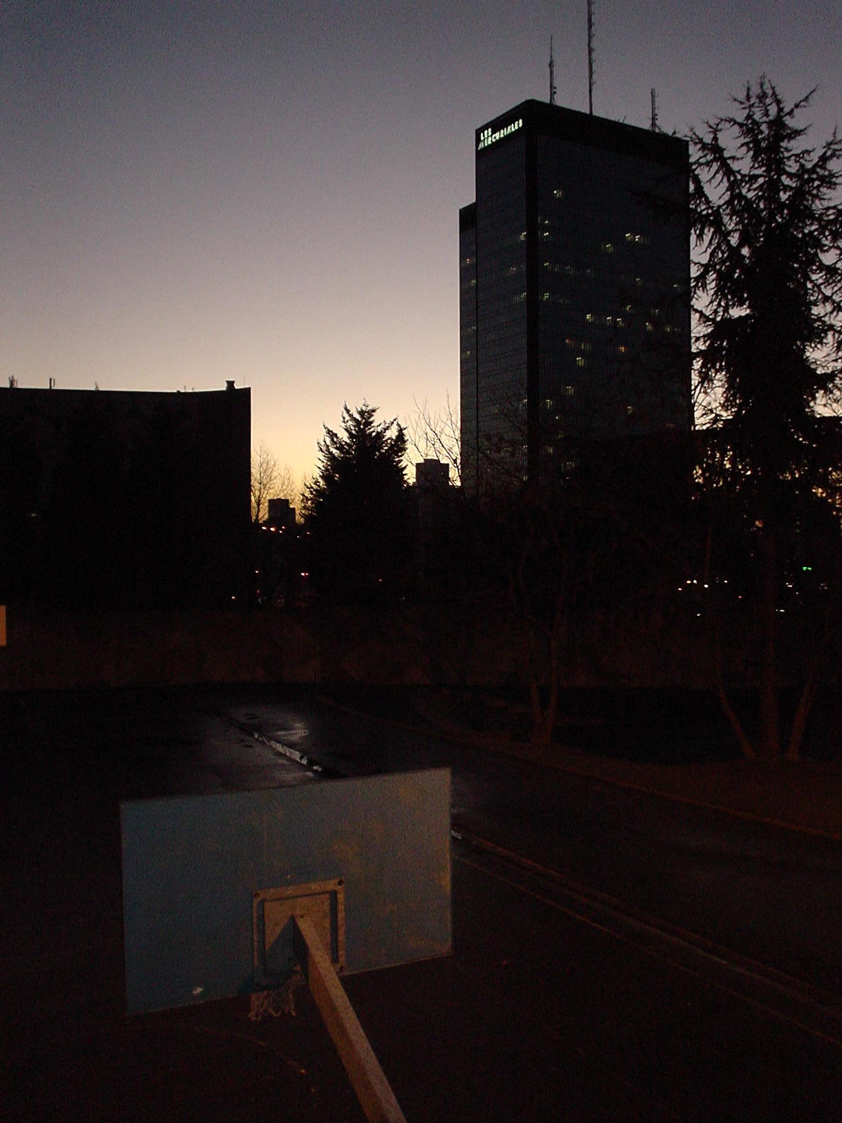 Une tentative d’épuisement du paysage routinier à partir du point de vue que l’on obtient depuis la salle fumeurs des enseignants. Chaque photographie est donc le résultat d’une pause (clope) prise sur le travail. Les prises de vue sont réalisées de façon quotidienne et s’étendent sur l’année de septembre 2003 à juin 2004. Le cadrage est toujours le même et l’écoulement du temps au collège sur une année est rendu prégnant à l’image par le changement des saisons. Le temps s’imprime à l’image, les variations de lumière d’une prise de vue à l’autre et les fondus enchaînés évoquent les jours qui passent. Une année entière est ainsi condensée à l’image.