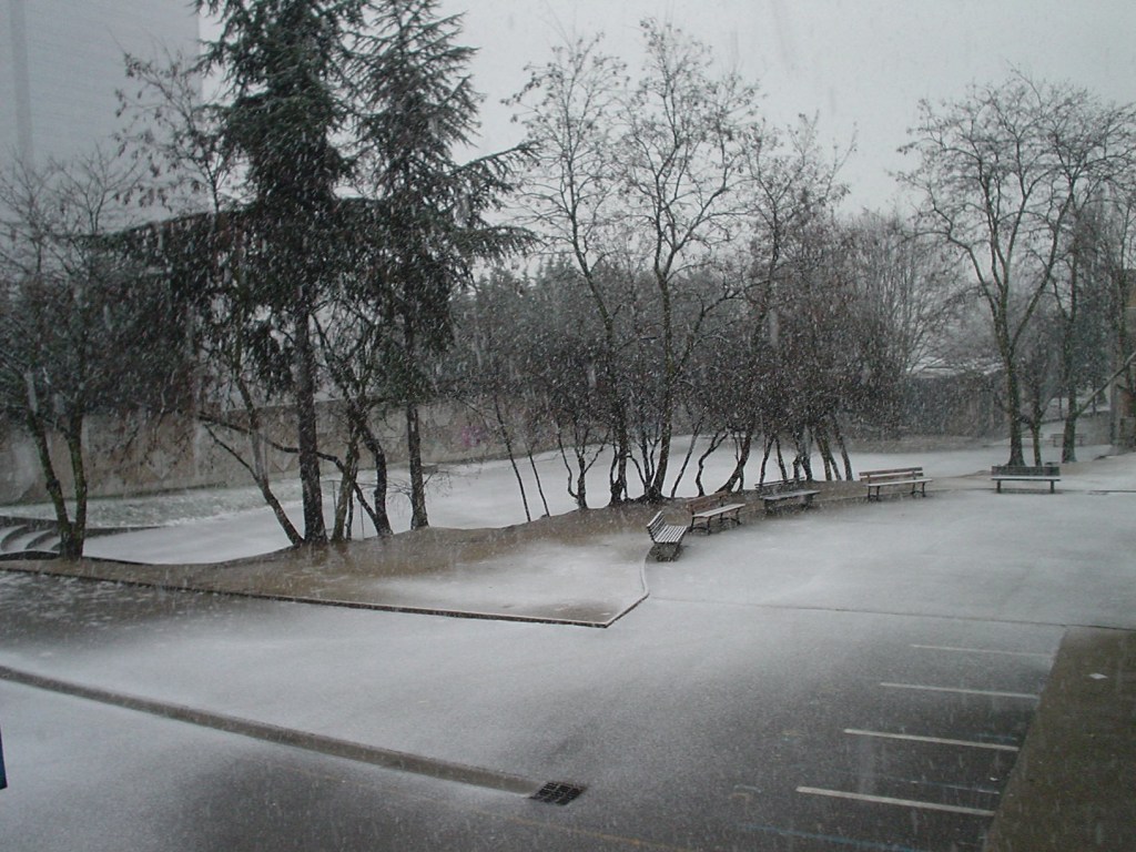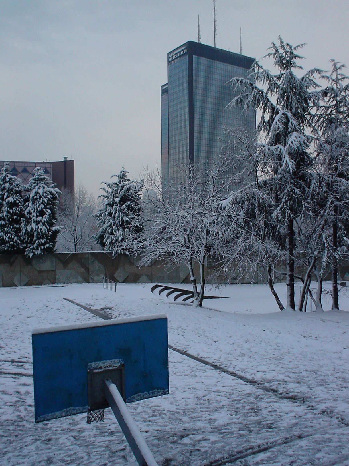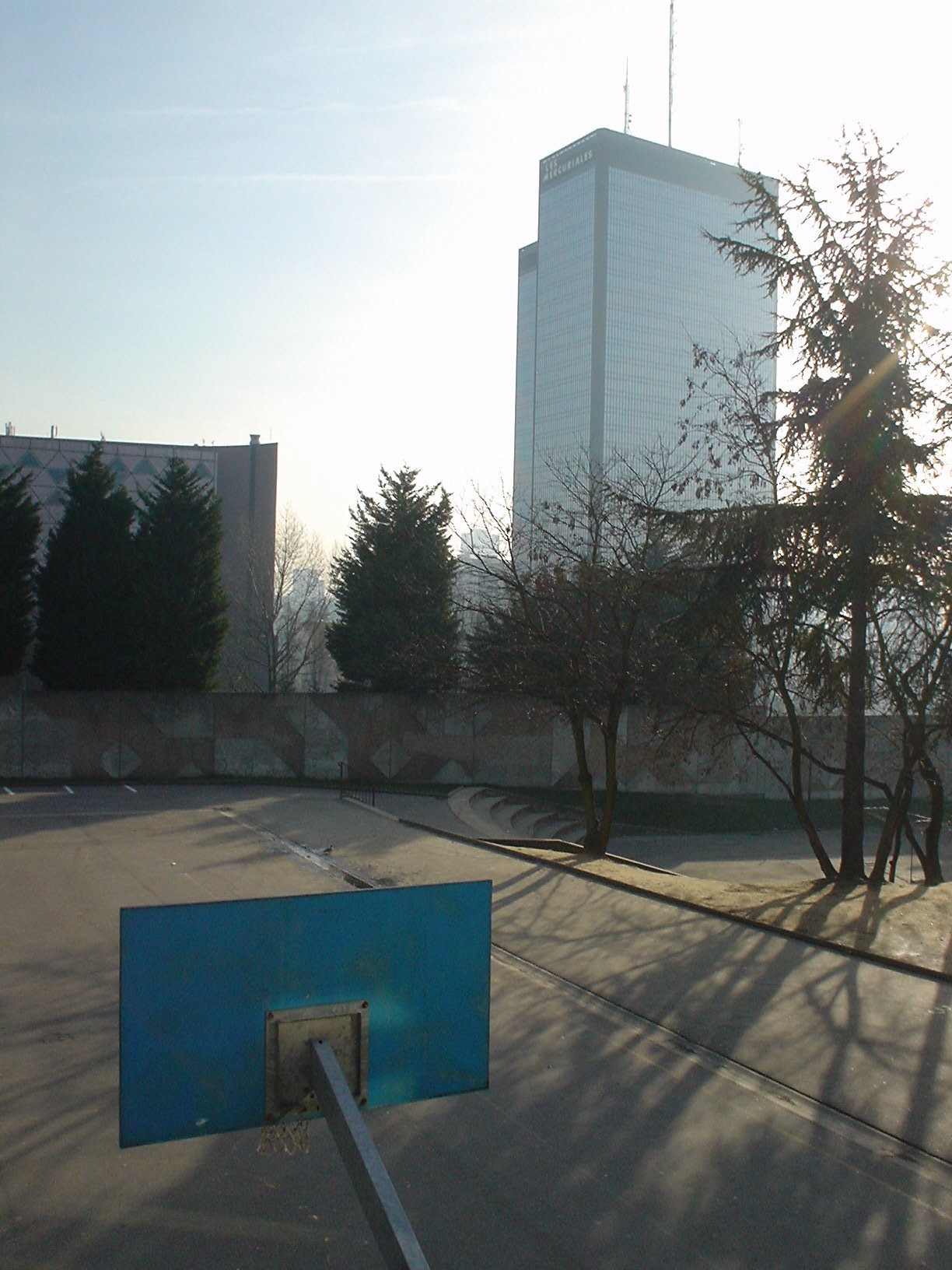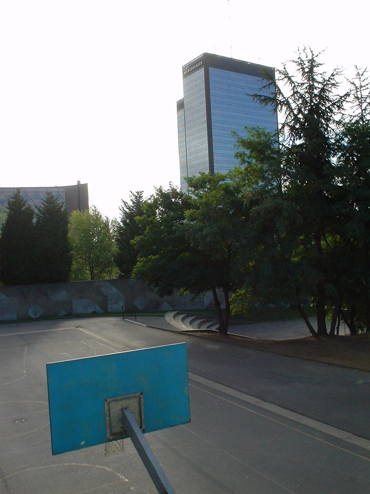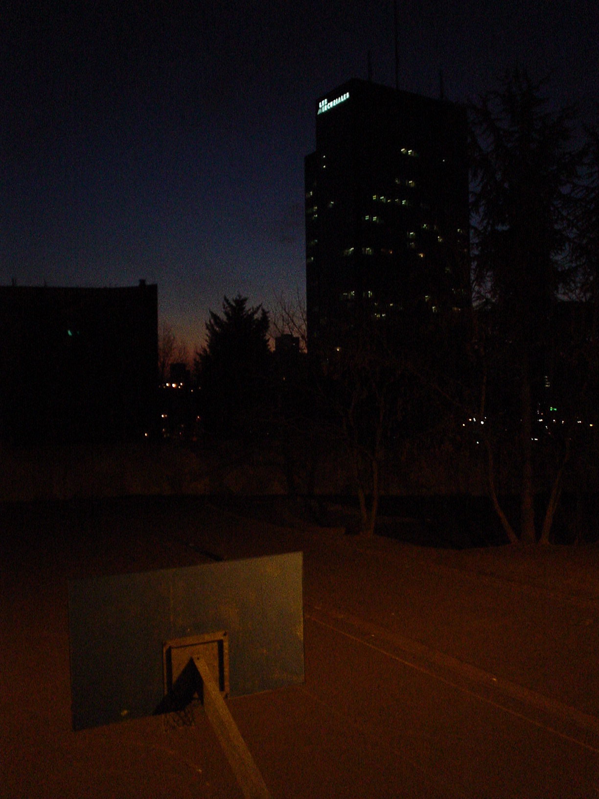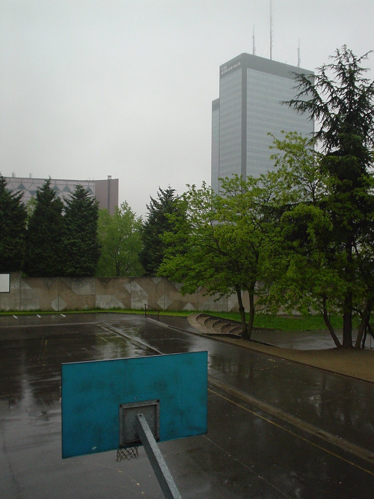 Une tentative d’épuisement du paysage routinier à partir du point de vue que l’on obtient depuis la salle fumeurs des enseignants. Chaque photographie est donc le résultat d’une pause (clope) prise sur le travail. Les prises de vue sont réalisées de façon quotidienne et s’étendent sur l’année de septembre 2003 à juin 2004. Le cadrage est toujours le même et l’écoulement du temps au collège sur une année est rendu prégnant à l’image par le changement des saisons. Le temps s’imprime à l’image, les variations de lumière d’une prise de vue à l’autre et les fondus enchaînés évoquent les jours qui passent. Une année entière est ainsi condensée à l’image.