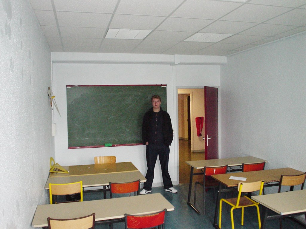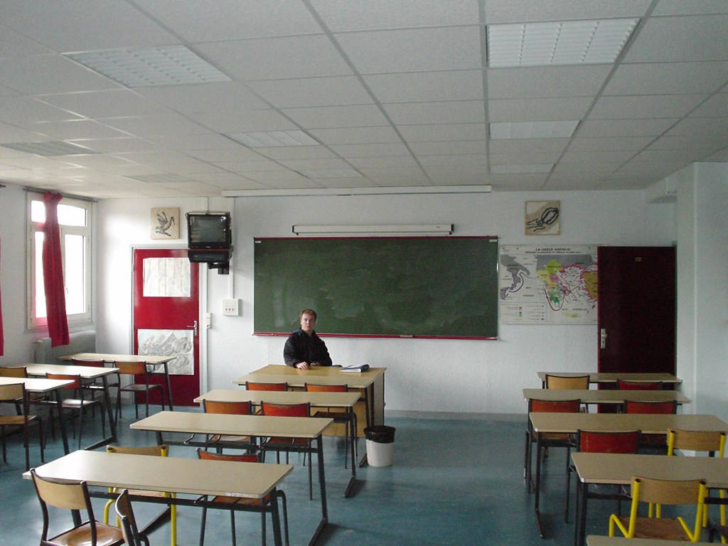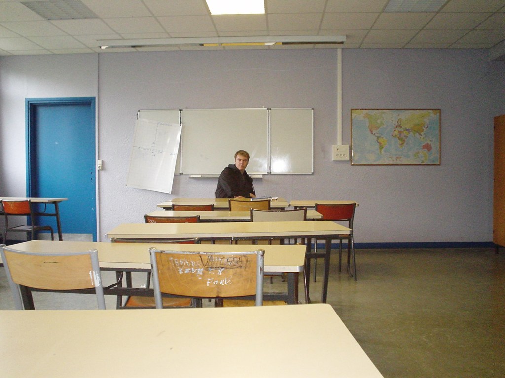 J’ai donc travaillé seize mois dans ce collège (de mars 2003 à juin 2004) et, entre autres activités de déviance au travail, je me suis saisi là encore de l’ambiguïté de mes multiples identités pour m’auto-mettre-en-scène au travers d’autoportraits réalisés dans les salles de classe vides.