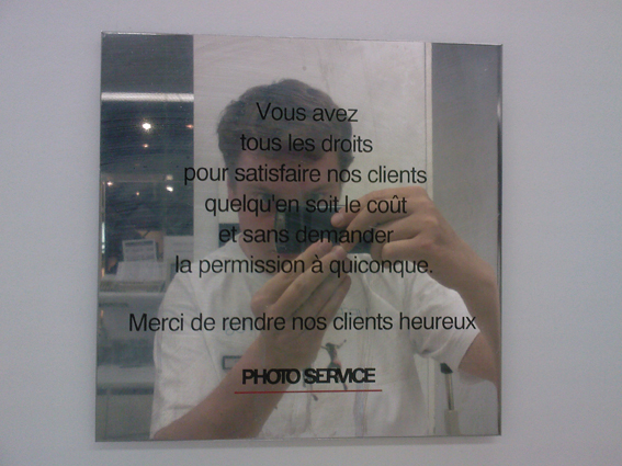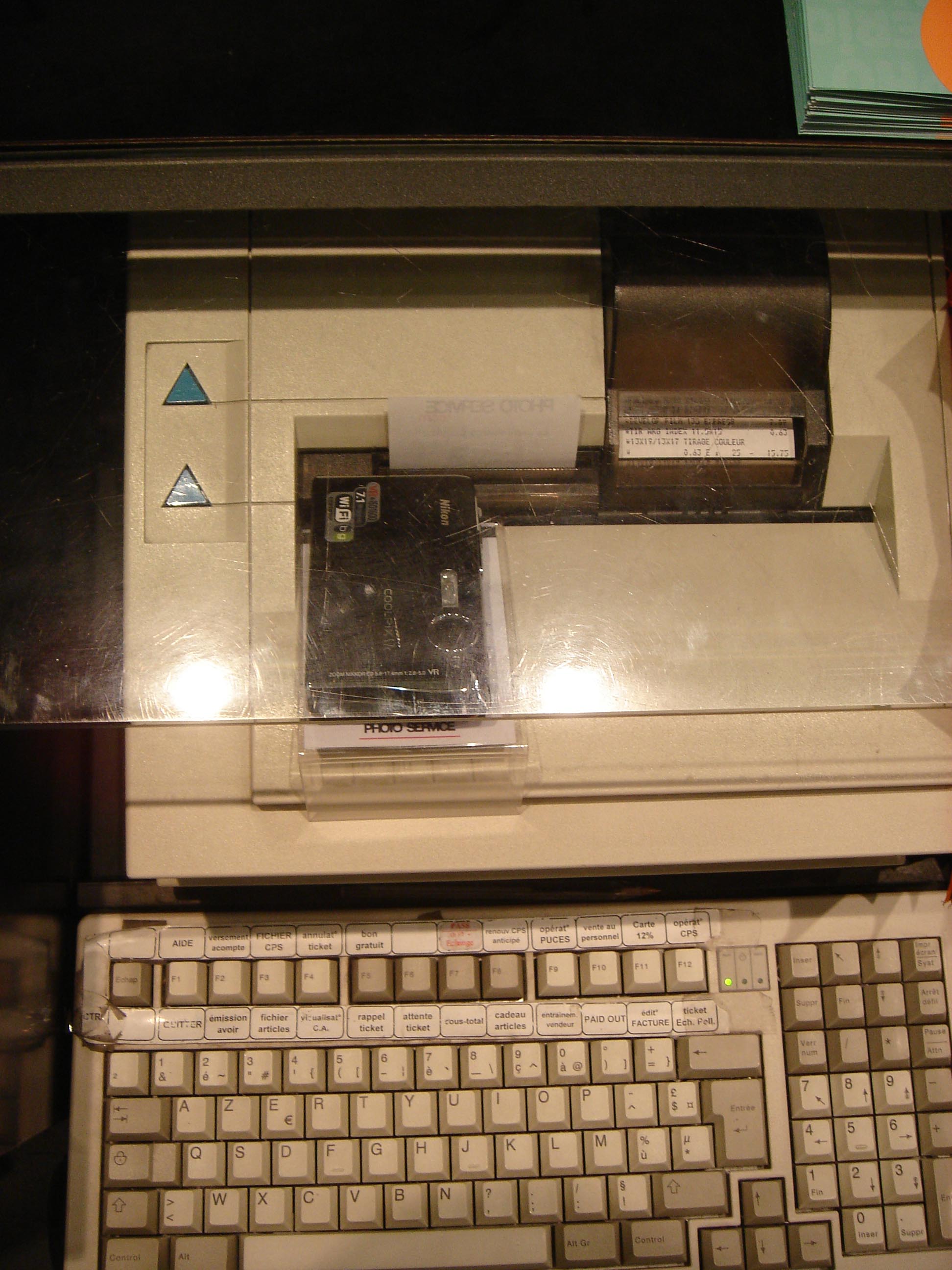 Étant donné la division technique du travail dans le magasin (avec un modèle managérial plus proche de la restauration rapide de type McDonald que du laboratoire photographique), j’ai d’abord, et essentiellement, été placé à la caisse, c’est-à-dire à un poste en relation avec les clients et non avec la production.