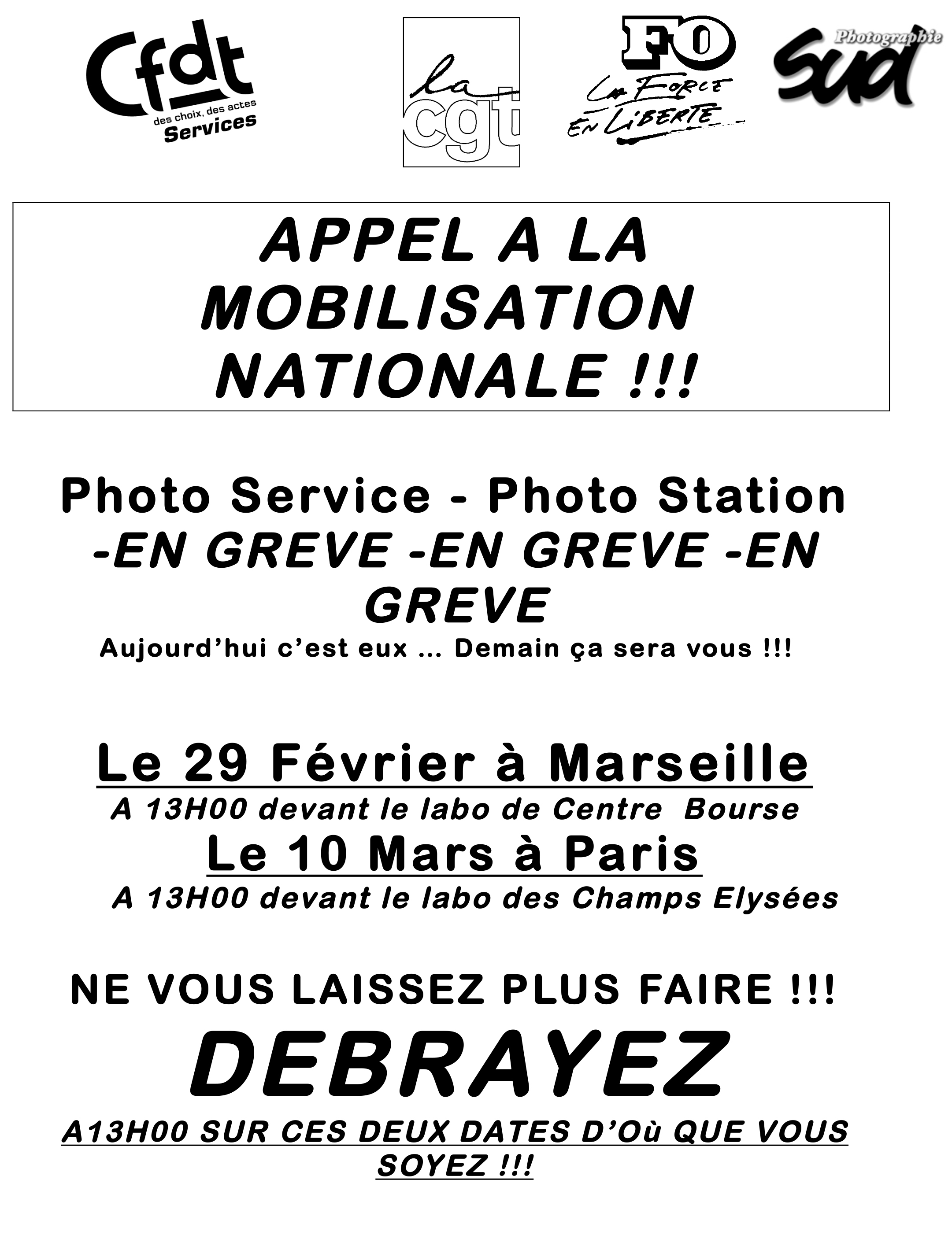 La plus grande grève a eu lieu lors des trois journées d’action des 29 février (à Marseille), 5 mars (à la Plaine Saint-Denis) et 10 mars 2008 (à Paris devant le magasin des Champs Élysées) organisées contre la fermeture des enseignes Photo Service et Photos Station (PSPS) et les menaces de licenciements qui pesaient sur la tête des salariés. Cependant, on ne peut pas dire que dans mon magasin, les collègues avaient une grande culture de l’action syndicale, si bien que j’ai eu quelques difficultés à débrayer et à entraîner mes collègues avec moi dans cette grève. À titre d’exemple, lorsque je suis arrivé dans ce magasin, les panneaux d’information syndicale étaient placés sous les patères murales, si bien que les manteaux des employés les cachaient systématiquement.