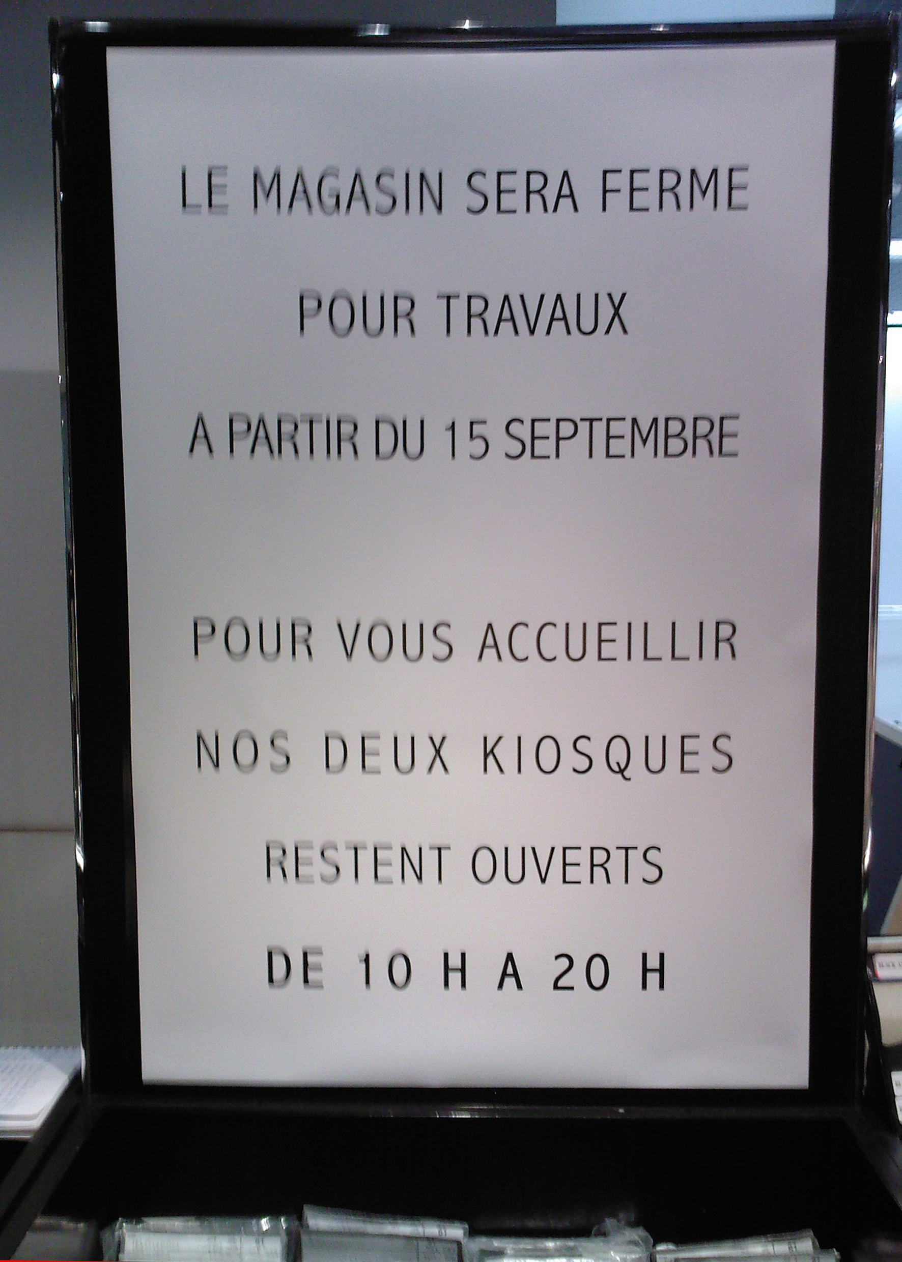 Après la reconfiguration de notre magasin (en novembre 2007), ils avaient tout bonnement disparu. À la réouverture du magasin, ma première bataille a donc été d’exiger régulièrement auprès de mon responsable de magasin la mise à disposition de nouveaux panneaux syndicaux que je n’ai, jusqu’au jour de mon départ, jamais obtenu.