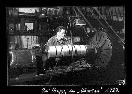 Theo Gaudig, Autoportrait en tourneur, photographie prise secrètement grâce à un retardateur pendant ses heures de travail de nuit dans l’usine d’aciérie Krupp, à Essen dans la Ruhr, 1927, Musée de la Ruhr, Essen ; Cette photographie a également été utilisé en première de couverture du journal Arbeiter Illustrierte Zeitung (AIZ) La légende allemande titrait : « Si ton bras puissant le veut… », paru le 31 janvier 1928.