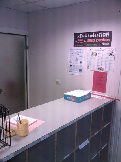Le mercredi 8 avril, j’ai scotché un bandeau d’Alternative Libertaire sur les murs de l’atelier de reprographie à l’endroit où l’on accueille le public de l’Inspection Académique des Yvelines. Sur cette affiche, il était inscrit :