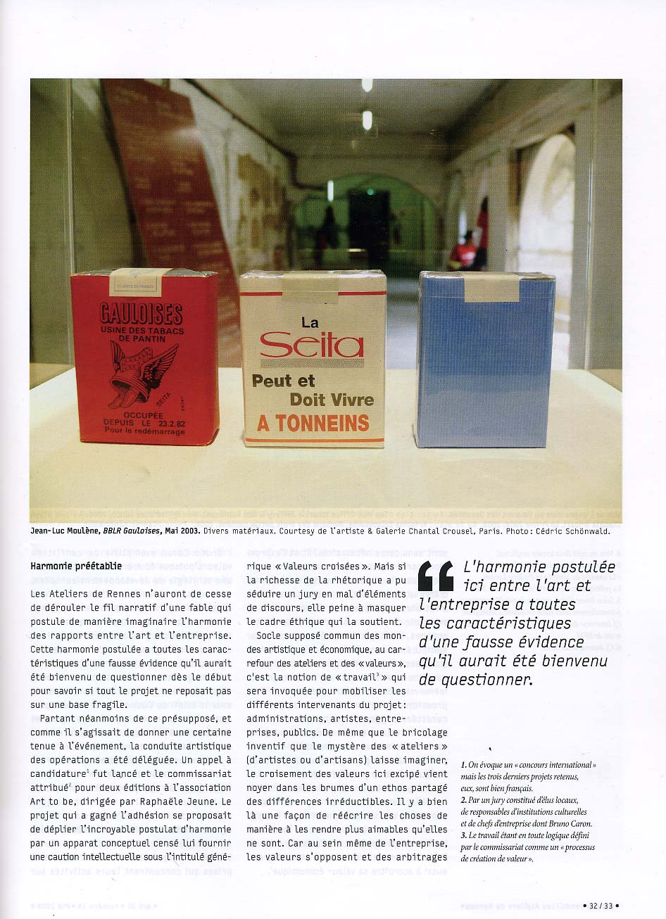 « La situation, dit Brecht, se complique du fait que, moins que jamais, une simple “ reproduction de la réalité ” n’explique quoi que ce soit de la réalité. Une photographie des usines Krupp ou AEG n’apporte à peu près rien sur ces institutions. La véritable réalité est revenue à la dimension fonctionnelle. La réification des rapports humains, c’est-à-dire par exemple l’usine elle-même, ne les représente plus. Il y a donc bel et bien “ quelque chose à construire ”, quelque chose d’“ artificiel ”, de “ fabriqué ” ». Walter Benjamin, « Petite histoire de la photographie », Études photographiques, n° 1, 1996, p. 26-28.