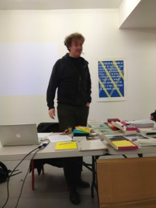 Résumé : Réunissant les interventions de Sophie Lapalu (Peut-on faire des œuvres qui ne soient pas d’art ?), Robert Kosmann (La perruque ouvrière, définition et débats), Olivier Lapert (Je vis du vol et…), Véronique Moulinié (Faire et se créer : manipulation de savoirs technologiques et mise en scène de soi), Laurent Marissal (Parler c’est déjà peindre #47) et Johanna Viprey (De l’artiste en chauffeur de taxi à l’artiste en commissaire), cette journée était pour nous l’occasion de confronter les méthodes artistiques à d’autres façons de rendre compte ou d’agir sur les mondes du travail.
