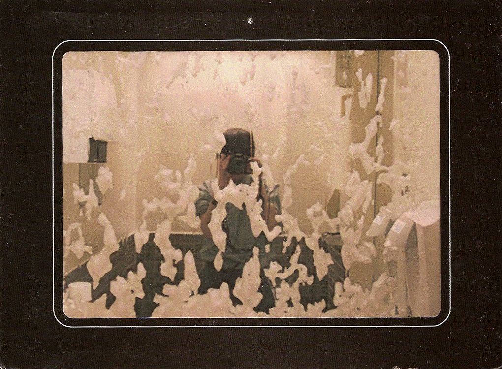 Je connaissais Dominique Sirois, car elle avait déjà bien voulu se prêter au jeu de la BTP en me faisant parvenir un CD des sons qu’elle avait enregistré lorsqu’elle travaillait en tant qu’« agente de sécurité[1] » dans un musée. Par le biais de cette post-a-photo, elle m’a fait parvenir un autoportrait réalisé sur son temps de pause et dans les sanitaires de son lieu de travail. Elle l’a intitulé : Savon sur miroir euphorie.