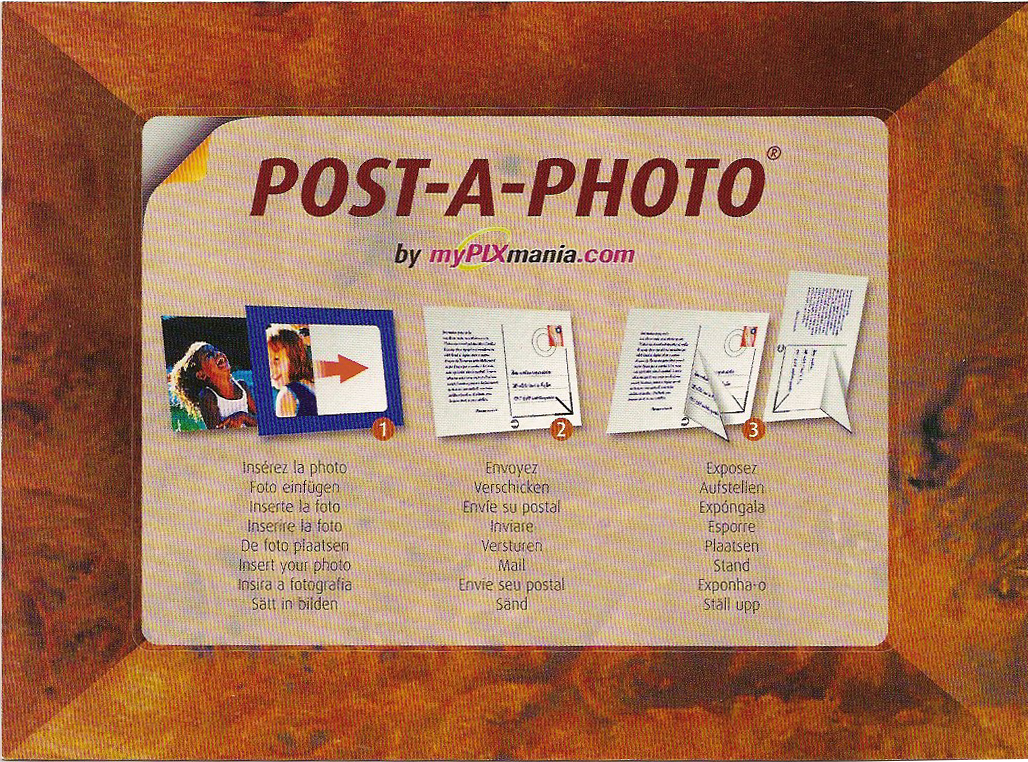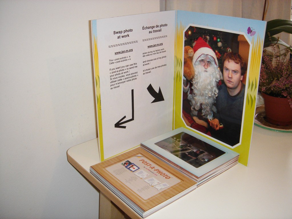 Ces photographies autoproduites étaient présentées dans des « post-a-photo » – des cartes postales personnalisables (que l’on peut exposer tels des cadres photographiques « à poser ») que j’avais escamotées à myPix.com – et placées à disposition du public.