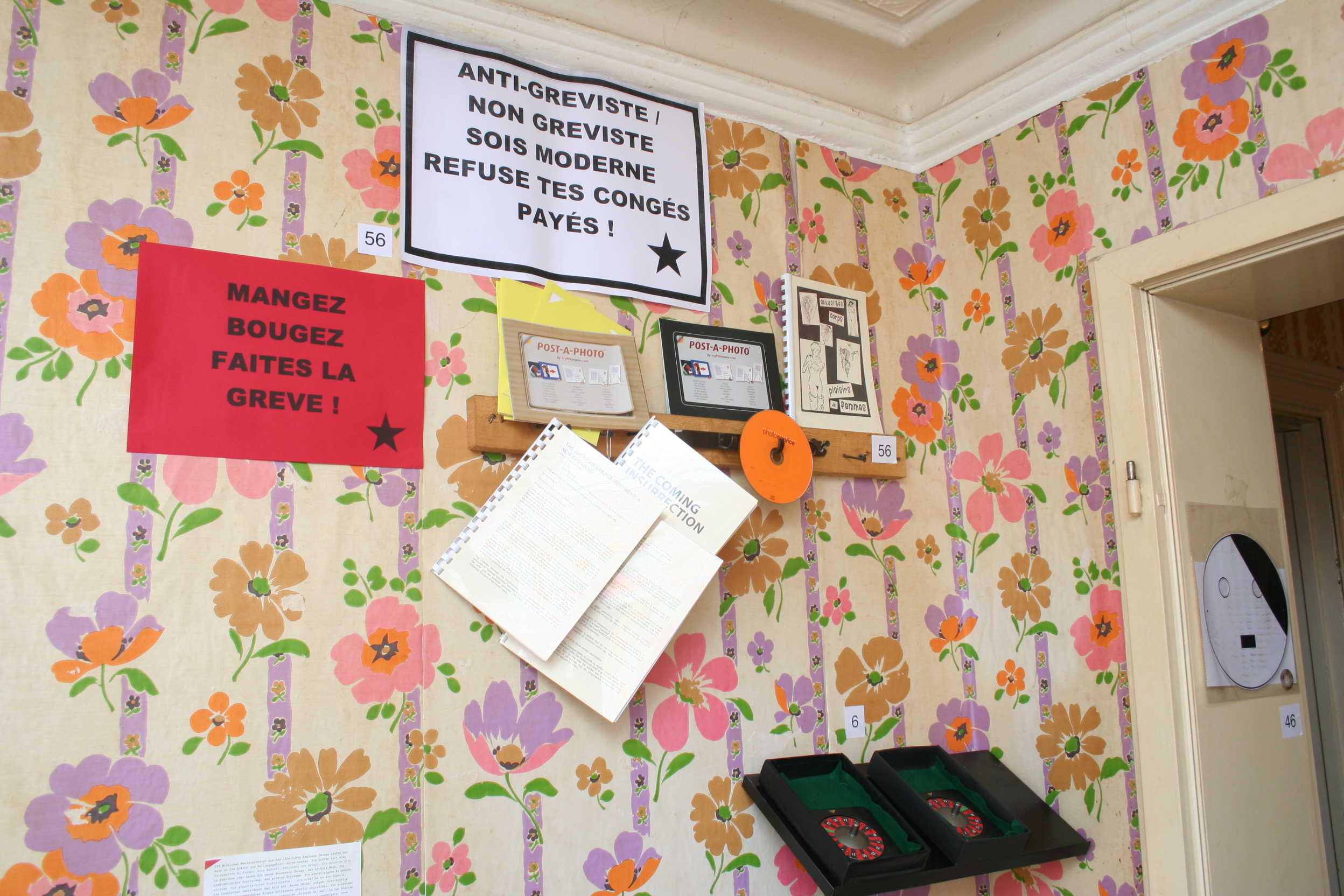 Résumé : Cette exposition, montrée au Cabinet du livre d’artiste du 20 septembre au 20 décembre 2018, a présenté une série d’objets venant questionner l’éventail de pratiques réunies dans l’appellation « arts tactiques » et leur rapport avec les pratiques de l’art contemporain. D’une façon pragmatique, l’élaboration de cette exposition a supposé de mener un travail de recherche de documents et de contacter les artistes et contributeurs. Elle s’est construite autour des huit vitrines disponibles au CLA et présentait un inventaire de contributions (éditions clandestines, perruques, sculptures, bricolages fonctionnels, objets de grèves, etc.) et de documents se rapportant à aux pratiques créatives au travail (brochures, photos, livres et citations, etc.). Nous avons souhaité que ces sélections et contributions soient accompagnées de récits faits par les acteurs eux-mêmes, explicitant le contexte et les modalités de leurs réalisations. Une attention particulière était portée à ne pas dissocier les documents exposés de leurs auteurs, et des processus et enjeux de création spécifiques. Dans cet esprit de recherche, les invitations étaient lancées à un public non-académique et plus spécifiquement à l’adresse de groupes de travailleuses et travailleurs, notamment membres de syndicats ayant une pratique de résistance et de défense de leurs droits. Des visites de l’exposition ont également été organisées dans l’objectif de confronter cet inventaire subjectif avec différentes manières de vivre le travail, de constater les résonances que peuvent avoir ces productions avec le vécu de ces travailleurs, mais aussi de recueillir les critiques ou récits permettant de préciser encore les hypothèses de cette recherche.