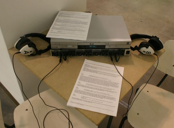 Michel Chevalier m’a parlé de son projet « Quadrophonischer Kunstkopf » : Le Coin d’écoute Diedrich Diederichsen qu’il présentait pour le groupe « target: autonopop » (de Hambourg) dans le cadre de la Biennale de Paris. Ce coin d’écoute Diedrich Diederichsen avait été proposé dans la librairie EN MARGE du 30 septembre au 11 octobre 2006 puis, dans la Médiathèque musicale de Paris du 12 octobre au 31 octobre 2006. À son invitation, je me suis donc rendu à la Médiathèque musicale (située dans les Halles de Paris) où j’ai pu entendre et faire l’expérience d’une histoire et contre-histoire des musiques punk, industrielle et noise… En effet, le dispositif proposait, par l’entremise de deux casques placés à disposition du public (le A et le B), d’alterner les écoutes et de comparer les musiques. À la compilation des morceaux (diffusée dans le casque A) qui, de 1979 à 1999, avaient été légitimés par les chroniques enthousiastes de Diedrich Diederichsen (critique d’art, théoricien des musiques actuelles et spécialiste de la « Pop culture ») ; Michel Chevalier avait opposé une autre compilation composée à partir de morceaux de groupes différents (diffusée dans le casque B) qui, s’ils n’avaient pas été chroniqués par Diedrich Diederichsen ou n’avaient pas fait partie de son « classement top » de ces années passées en revue, méritaient tout autant ou plus encore, de regagner leur place dans l’histoire de ces musiques et de sortir des oubliettes dans lesquelles ils avaient été plus ou moins précipités.