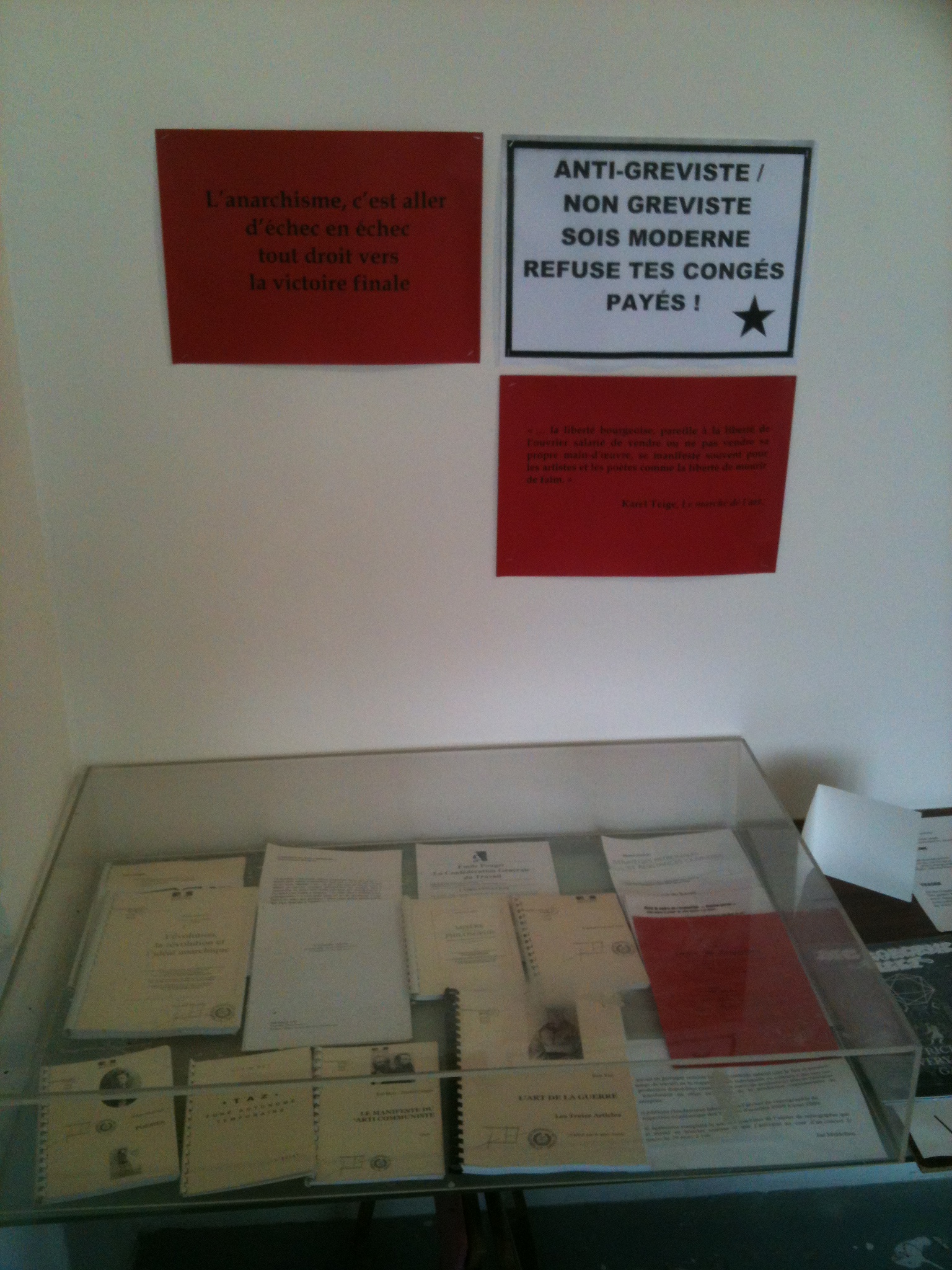Dans le cadre de la reprographie de l’Inspection académique des Yvelines, j’ai notamment réalisé des éditions et ré-éditions clandestines de livres, d’affiches et de tracts. Ces éditions ont été exposé dans le cadre du salon de l’auto-édition “ant-Aufklärung” qui a eu lieu le : Samedi 28 et Dimanche 29 mars 2015 à la Générale. (Au 6, grande rue 92310 Sèvres, métro Pont-de-Sèvres sur la ligne 9, dans la rue qui poursuit le pont dont la station a pris le nom. Une pancarte verticale signale la Générale.)