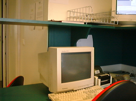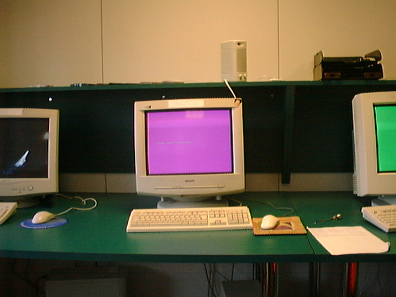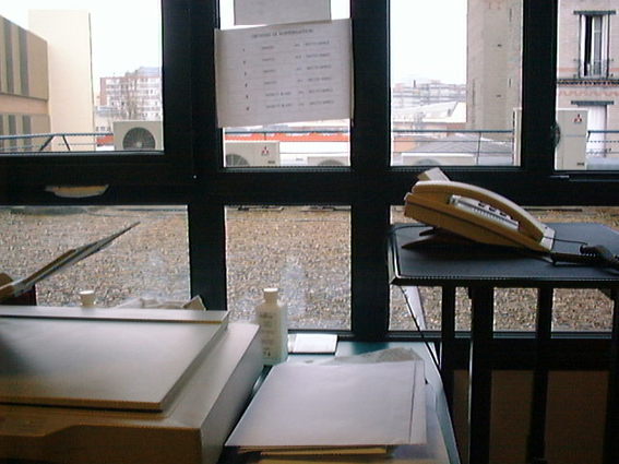 Ce deuxième montage, réalisé après coup, est intitulé Une petite grève et puis s’en va. Je l’ai réalisé à partir de photographies prises à L’Argus de la Presse en février 2001 lorsque j’étais opérateur-scanner. La courte durée de ma carrière au sein de cette entreprise ne m’a permis de réaliser que cet unique tour de chaise photographié à partir de mon poste de travail.
